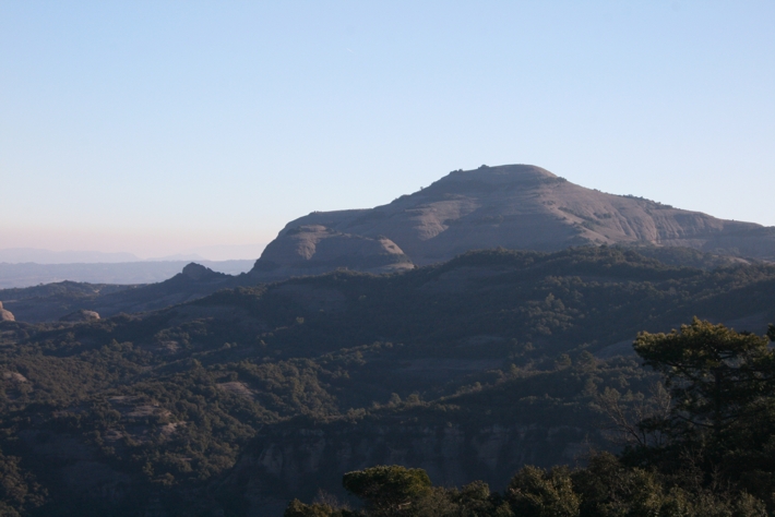 Seguint l’ample camí de la Carena de la Castanyera arribes a un punt on el mateix fa una giragonsa i una pujada a l’esquerra (si el segueixes arribes a Coma d’en Vila) i a la dreta surt un camí més estretet que és justament el que cal agafar i que de fet és la continuació de la mateixa Carena de la Castanyera. Seguim el camí fins arribar a un rocam sense arbres des d’o n es veu una excel·lent vista del Montcau a la dreta, de Montserrat a l’esquerra i dels Pirineus just al davant. Aquest és un bon lloc per parar, esmorzar i gaudir de les vistes. Ara cal continuar el camí i a l’arribar a una zona similar a la que hem fet la parada anterior ens desviem i agafem un petit caminet que surt a mà dreta i que sembla que vol baixar cap a la canal de la Font Freda.
