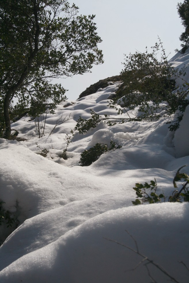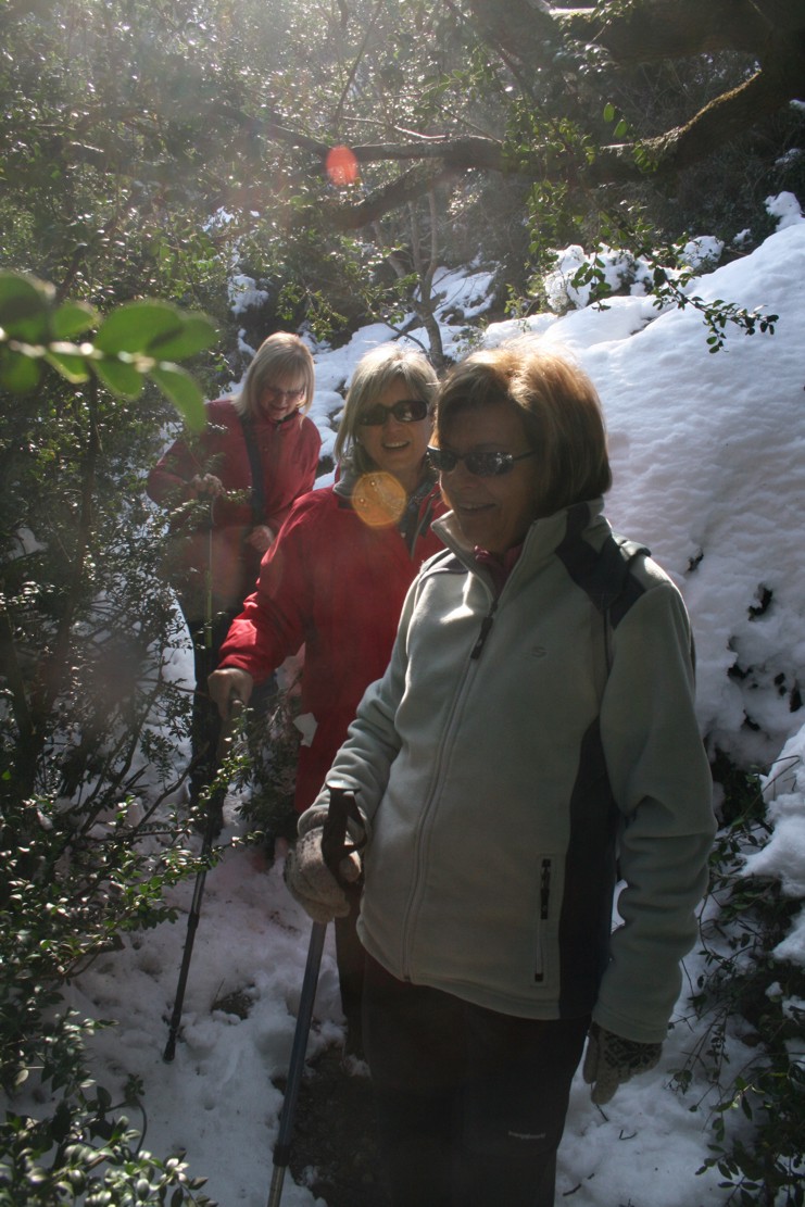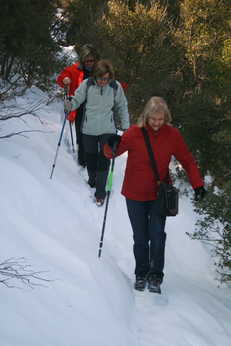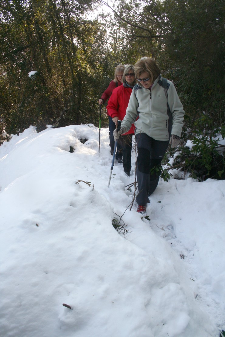 Aquesta setmana hem fet la primera excursió del Rotary Terrassa amb neu. D’entrada em intentar fer la ruta que teníem prevista però quan hem arribat a l’alzina del salari ens hem adonat que la quantitat de neu que encara hi havia al bosc feia pràcticament impossible poder fer la sortida amb un mínim de seguretat. La pujada fins al coll de tres creus era força gelada i el gruix de neu acumulat era molt gran. Per això hem decidit canviar de ruta i anar per la banda del camí Moliner que és bastant més assolellat.