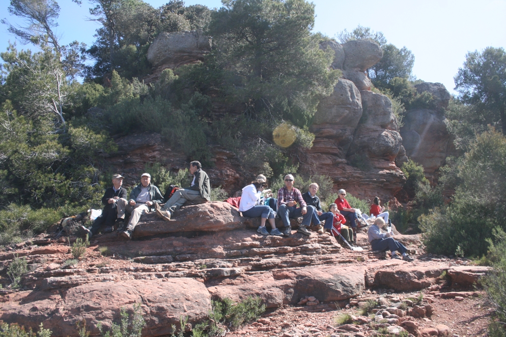 Avui hem fet una excursió que ens ha fet rejovenir el club ja que ens han acompanyat l’Estel i la Meritxell de 13 anys. La sortida l’hem començat a l’aparcament de l’alzina del Sal.lari tot pujant cap al Coll de Tres Creus on em agafat una camí a la banda esquerra que passa per sota de Castellsapera. Aquest camí carener ens porta desprès d’una baixadeta al Collet Gran i desprès a la part de sota del Paller de tot l’any. Passat el Paller ens trobarem un trencall a mà esquerra que baixa sobtadament i que si l’agafem ens portarà de seguida a una balma on hi ha la Font del Lladre.