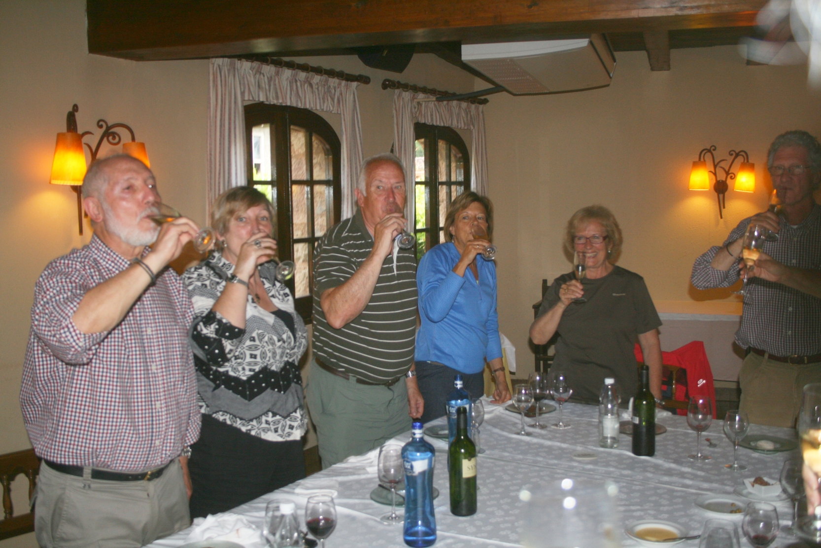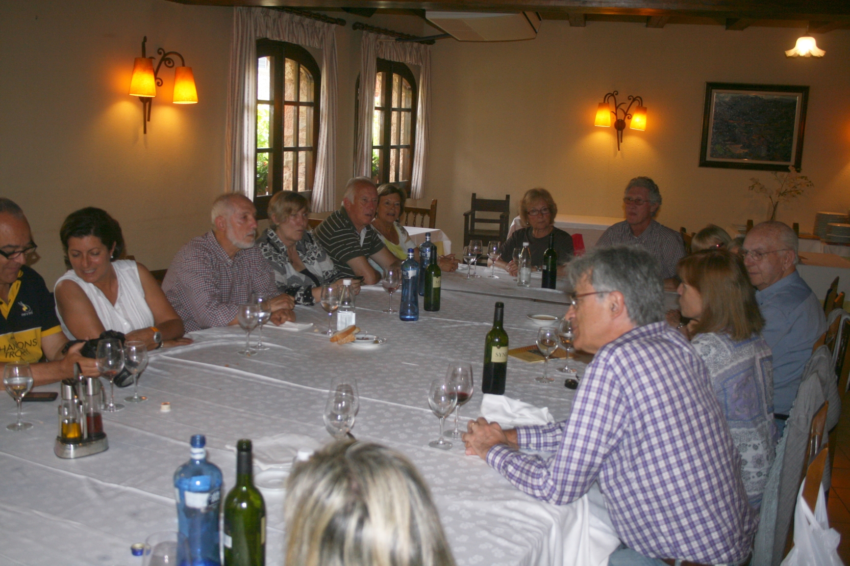 Desprès d’una sortida pel voltant de les Fonts de Mura i que podeu llegir en el post anterior ens hem trobat amb la resta de components que no ens havien pogut acompanyar en la caminada i hem compartit una bona estona al voltant de la taula. Al final hem brindat i hem gaudit de dos parlaments, el primer a càrrec del nostre actual president, en Josep Puy, que ha esmentat la importància d’actes, com el d’avui, per enfortir els vincles d’amistat entre els membres del club i l’altre a càrrec del nostre proper president, en Ramon Guinjoan que utilitzant el seu humor ens ha fet riure a tots.