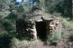 Desprès de la parada seguim el camí que ara inicia una suau pujada seguint el Torrent de la Font dels Pets, fins que trobem a mà dreta un senyal del parc natural que ens indica la direcció a Talamanca. Poc més endavant passarem ara planejant pel costat d’una nova caseta de pastor molt ben conservada i des de la que podem gaudir d’una bonica vista del poble de Talamanca enfilat a dalt de la carena. Seguim i donem la volta a la Bauma dels Gobians per tornar a baixar de nou cap a la riera en que ens trobarem amb la