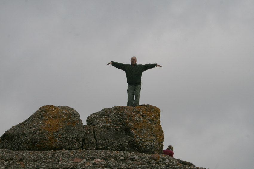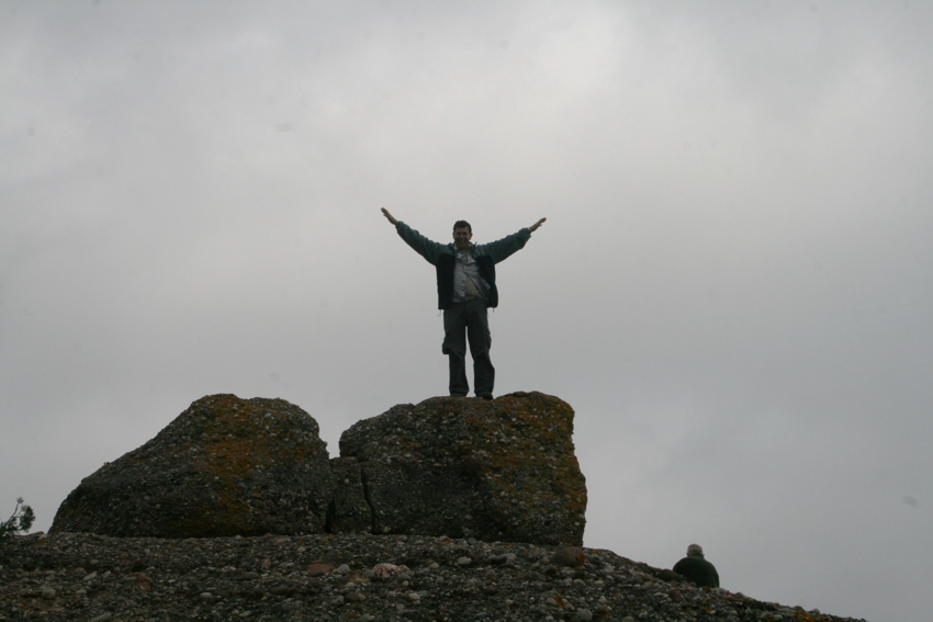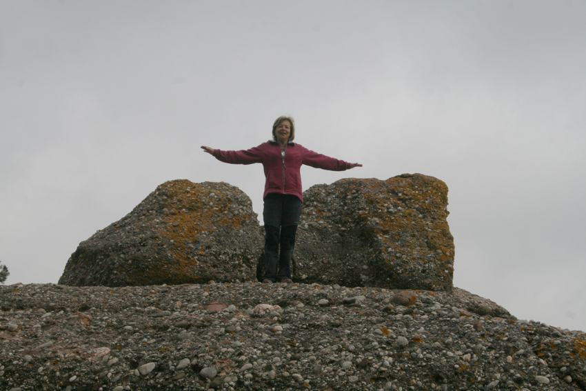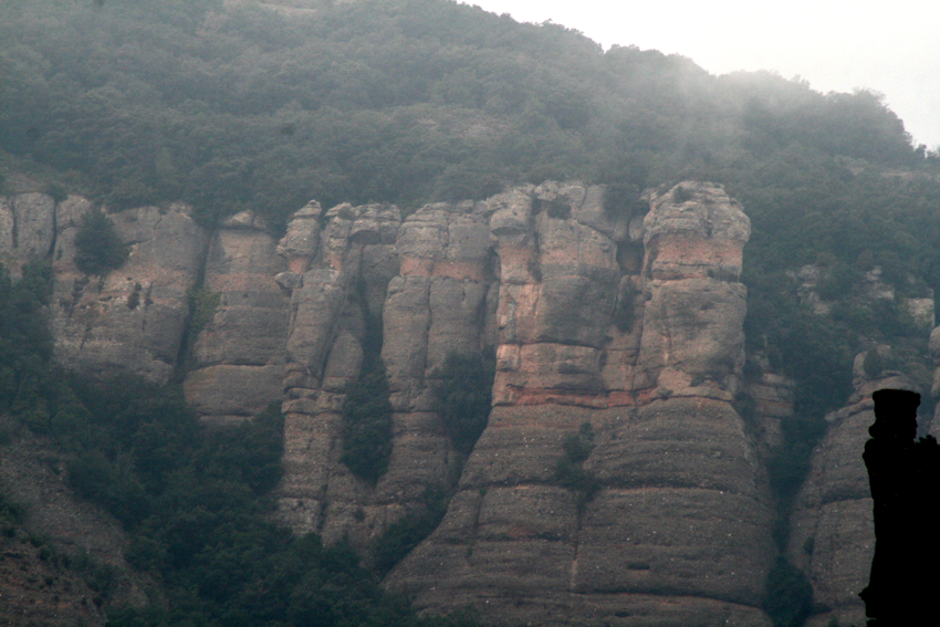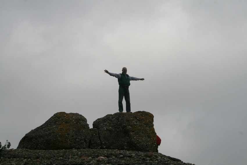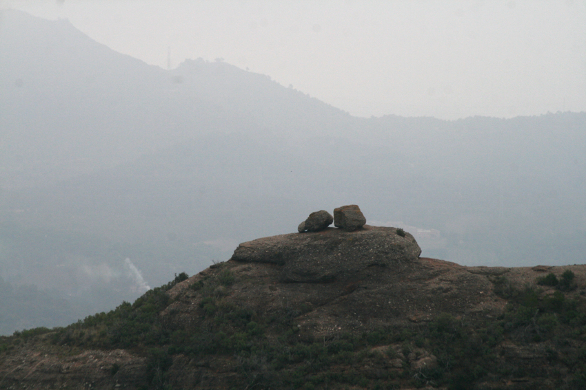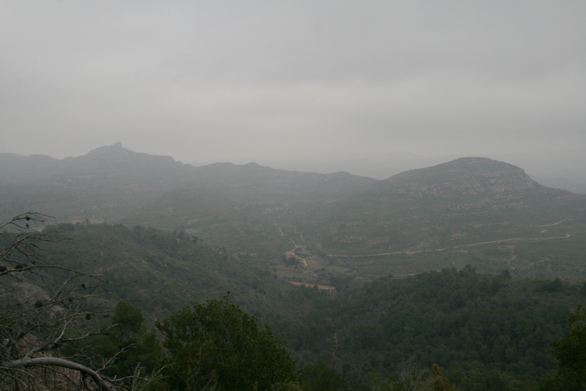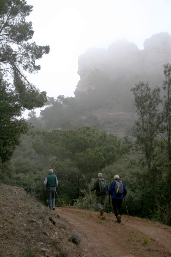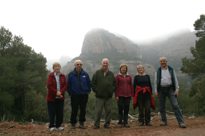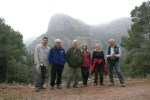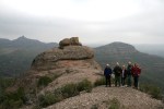 unes roques que serveixen de magnifica atalaia i des d’on val la pena quedar-s’hi una estona gaudint de les vistes, tot i que nosaltres vàrem triar un dia amb una mica massa de boira. Cal pujar a la roca més alta i fer-se la foto amb els braços oberts com una àliga i desprès continuar pel mateix camí, que ara anirà baixant per la Serra del Bonaire en direcció al coll de Palomeres, fins a trobar la pista que de tornada ens portarà de nou a on havíem deixat els cotxes. Una excursió senzilla i no gaire llarga amb un desnivell màxim de 150 m. apta per tothom i amb unes vistes excel.lents.