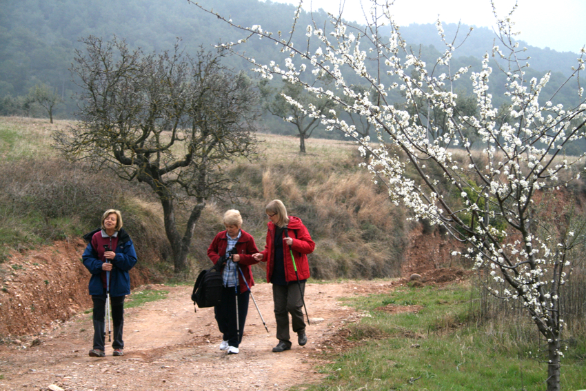 Una mica més endavant arribarem al coll de Palomeres, des d’on ja podrem apreciar una bonica vista de la vessant est de la Mola. Seguirem per la pista fins a trobar un camí ben marcat a la dreta que serà el que ens portarà fins al camí carreter que porta a la masia del Daví. Ens aturem a admirar els ametllers florits i els camps de conreu i seguim el mateix camí carreter que poc a poc anirà agafant altura en direcció a Roca mur que ja es mostra just davant nostre.
