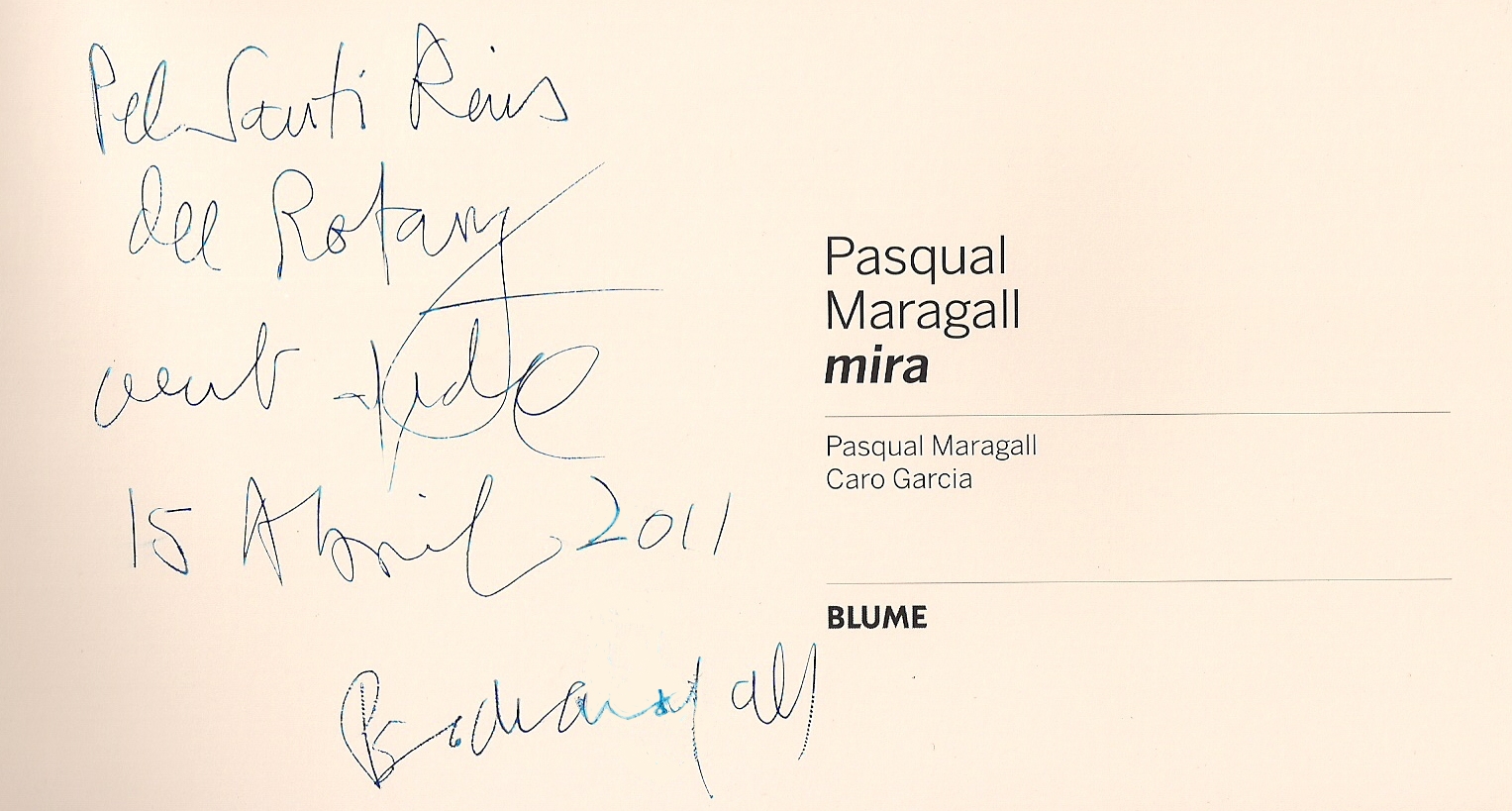 Us mostrem també la dedicatoria que ens va deixar en un dels llibres sobre l’exposició.