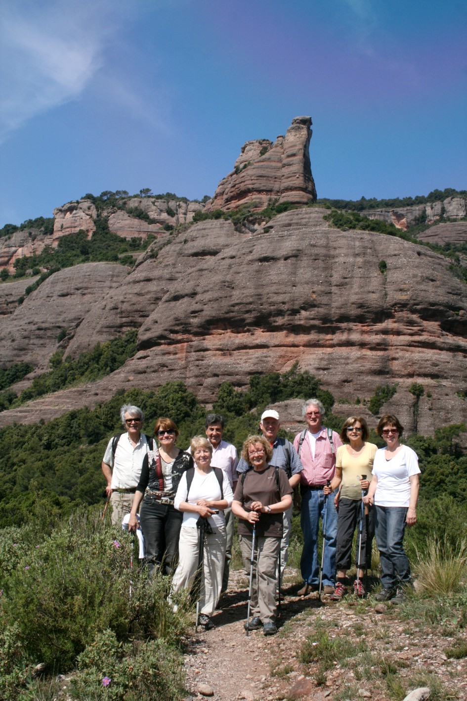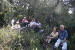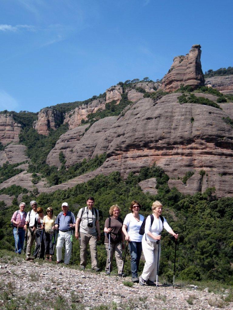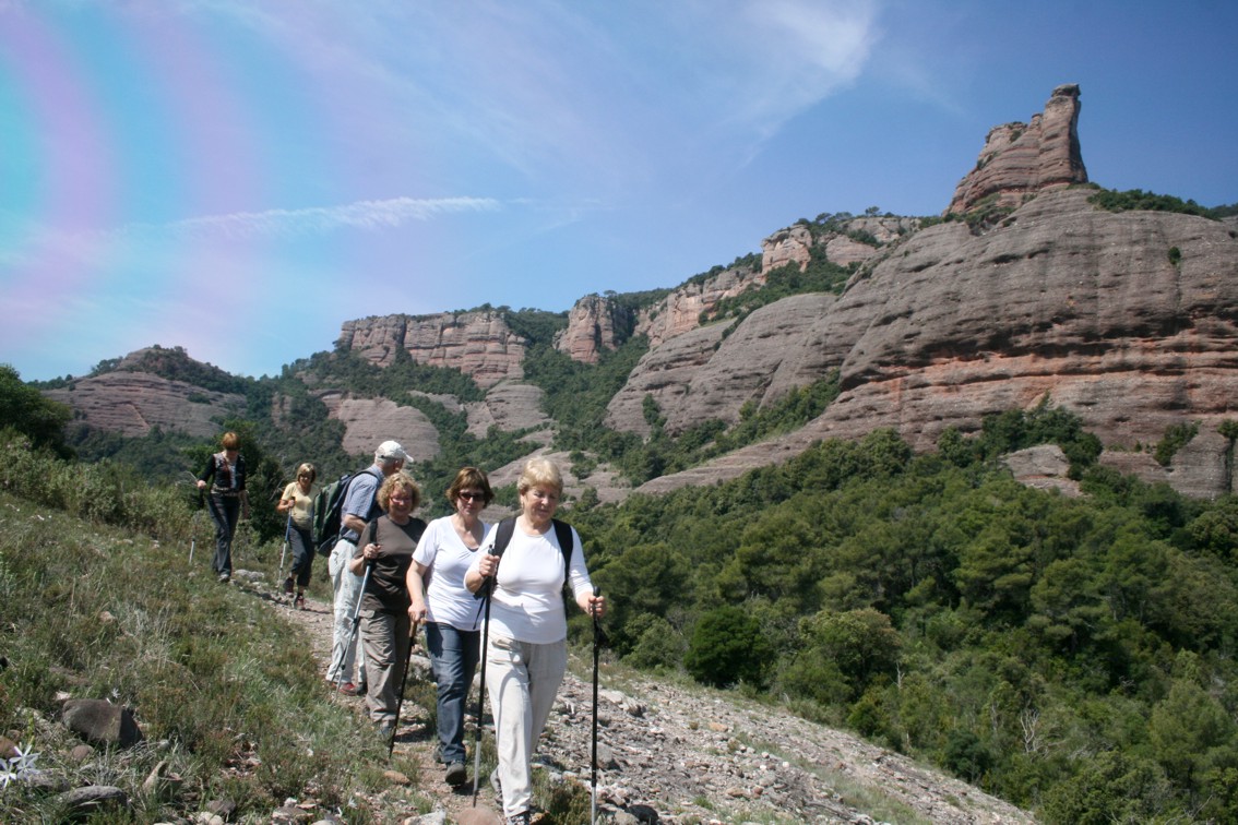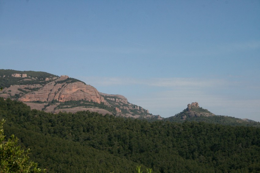 Passat el turó val la pena parar i admirar l’increïble vista de la Castellassa de can Torres. Seguim pel camí fins arribar al coll Llarg on hem esmorzat gaudint de les vistes i de les virolles, cada cop més abundants que porten els esforçats excursionistes. Destaquem els carquinyolis, els melindros, les olives trencades, el vi de cal Caparròs i el cafè amb llet del presi. Desprès de recuperar forces seguim per un trencall que trobem a la dreta del coll i que ens porta per una canal que baixa pel mig d’un bosc bastant tupit fins a la font de l’Arç que més aviat és una mena de bassal. Seguim pel mateix camí i arribem al Sot de Matalonga, un torrent que poc a poc s’anirà enxampant i que reconeixerem perquè presenta un terra amb una sorra molt fina,