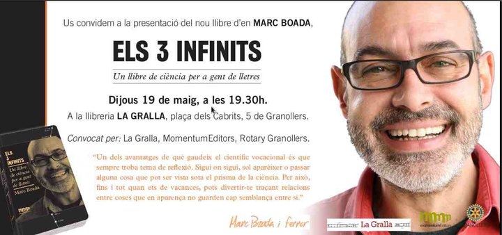 per fer la presentació del seu llibre “els 3 infinits” a la llibreria La Gralla amb el recolzament del Rotary.