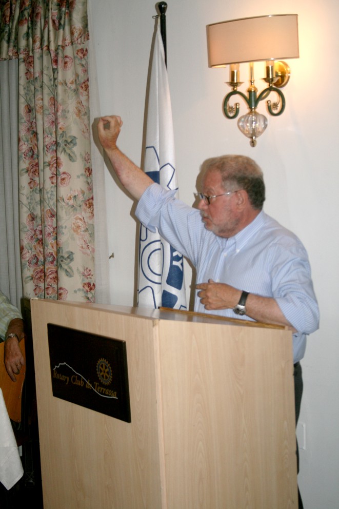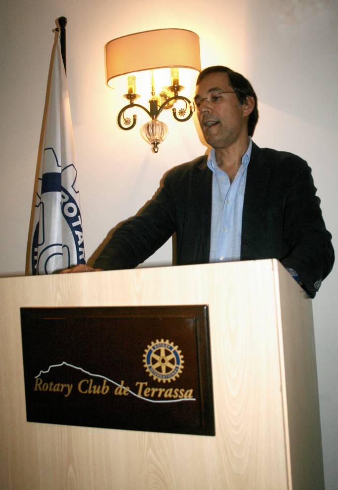 El doctor Josep Comerma en la seva intervenció en el Rotary Club de Terrassa ha començat explicant que les emergències cardiovasculars es presenten normalment en forma de malaltia coronaria o d’ictus o feridura, que és com abans era conegut el fet de no arribar sang al cervell.