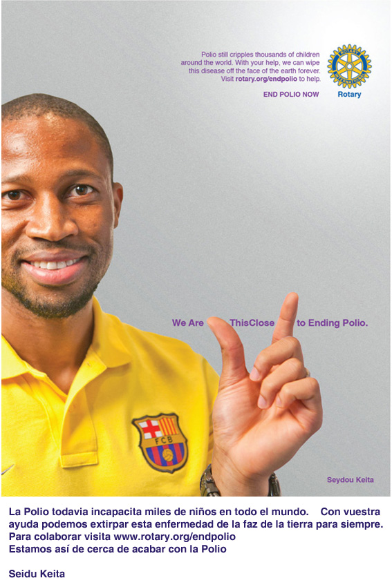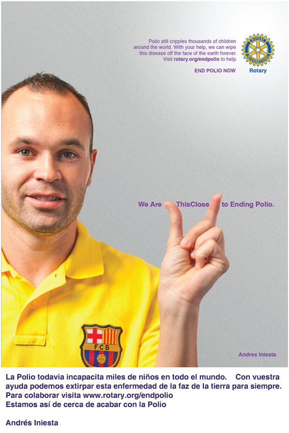 Fruit de l’acord entre el F.C. Barcelona i la Fundació Bill & Melinda Gates per l’eradicació de la Polio en el món i dins de la campanya de sensibilització per difondre aquest missatge, us mostrem els cartells que s’han editat, conjuntament amb Rotary International, amb la participació de destacats jugadors del primer equip del FC Barcelona, com són Iniesta i Keita
