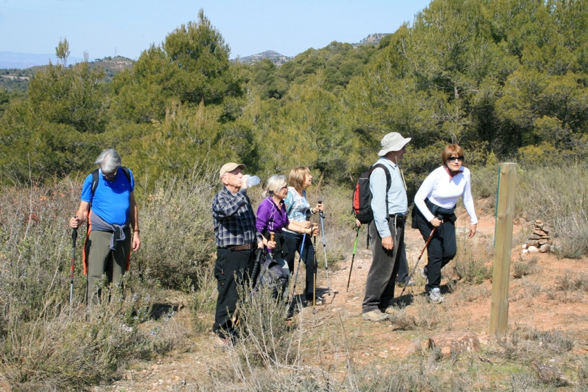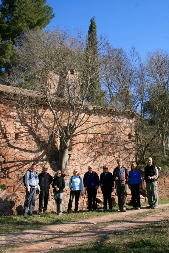 Hem baixat per la pista ampla que surt del davant de la masia i que baixa en direcció a Rellinars. Desprès de creuar una cables elèctrics hem baixat una mica més i hem agafat un caminet marcat amb unes fletxes vermelles i blanques que poc més endavant es creua amb un que hem agafat a mà esquerra. Aquest passa de nou per sota dels fils elèctrics i arriba a una zona de cabanes de pedra seca. Seguim i de nou tornem a passar per sota dels cables i just aquí cal baixar per una drecera que passa pel costat d’una segona cabana i que ens porta en forta b