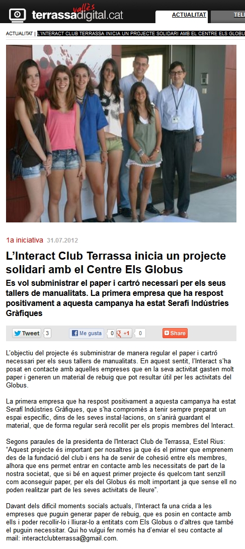 Han generat una nota de premsa per difondre aquesta activitat a la nostra ciutat i ja han aconseguit un cert ressó mediàtic. Felicitem als membres de l’Interact per aquesta primera activitat i els encoratgem a que segueixin aquest camí de servei als demés.