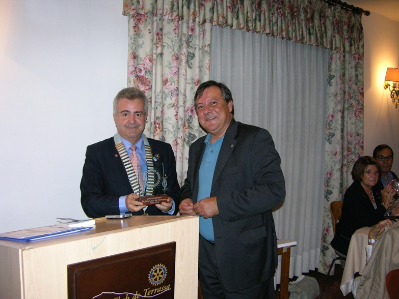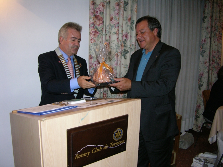 Fotos de la visita del Sr. Àngel Muixí a la seu del Rotary Club de Terrassa. En el decurs de la visita es van intercanviar obsequis, es va imposar el pin del Rotary a un nou soci i es van presentar tant els projectes del Club per el curs 2012-13, així com els objectius del districte 2002 en el mateix període. La presentació per part del club va ser realitzada per el president del curs 2012-13 Sr. Pep Rifà.