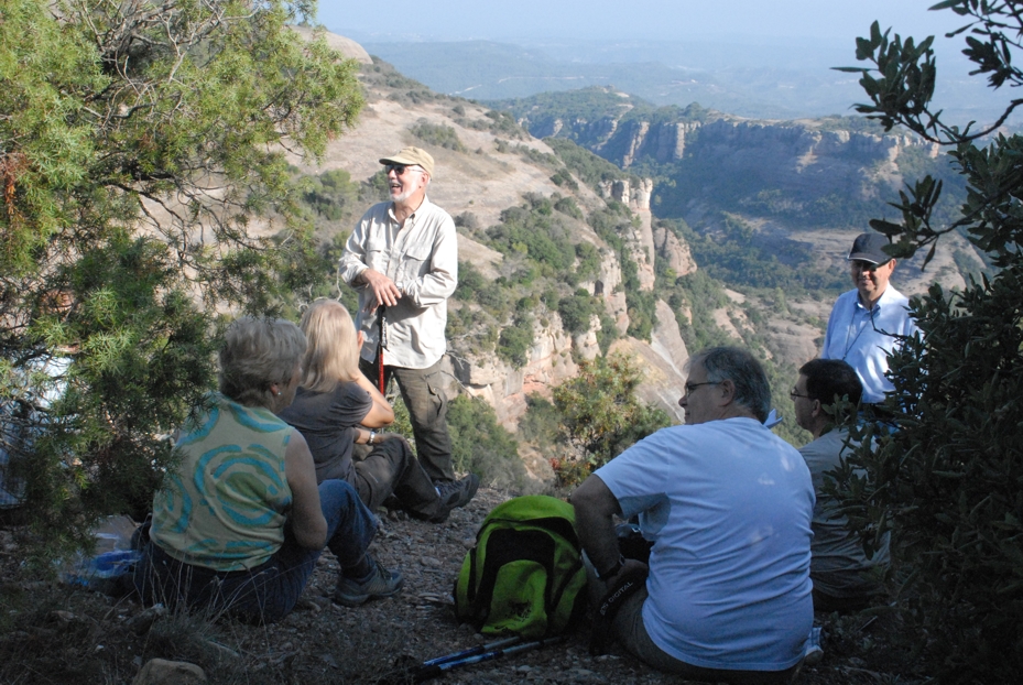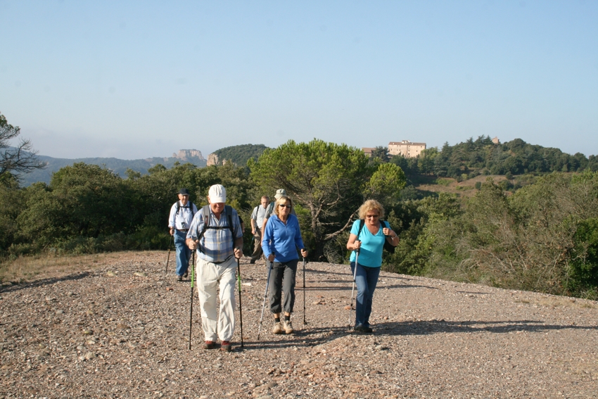 Hem seguit per la pista fins arribar a Coll d’Eres, lloc d’un antic emplaçament habitat, tot i que es desconeix de quina època ja que mai s’ha investigat. Ara cal seguir el camí de la carena del Pagès cap a la Mola i uns 200 metres més endavant hem agafat un petit sender que s’enfila a l’esquerra per un rocam. Aviat arribem a un magnífic mirador del Montcau i serra dels Emprius que ens ha servit per esmorzar.