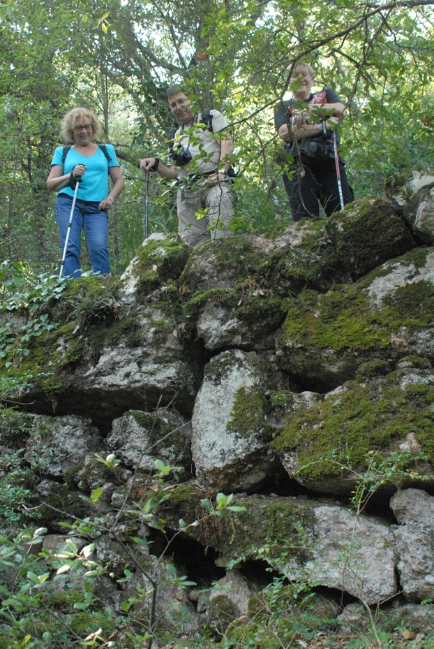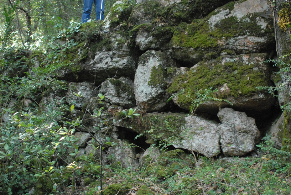 d’un mur de l’antiga bassa de la Calçada, una mena d’embassament possiblement d’època romana si tenim en compte les pedres ciclòpies que el conformen. Malauradament aquest espai tampoc ha estat estudiat ni datat. Seguim camí avall i observem com el camí presenta a la nostra dreta les restes de l’antiga calçada amb unes pedres molt grans que conformen una paret de més de dos metres d’alçada (cal fixar-s’hi bé). El camí segueix avall fins una riera.