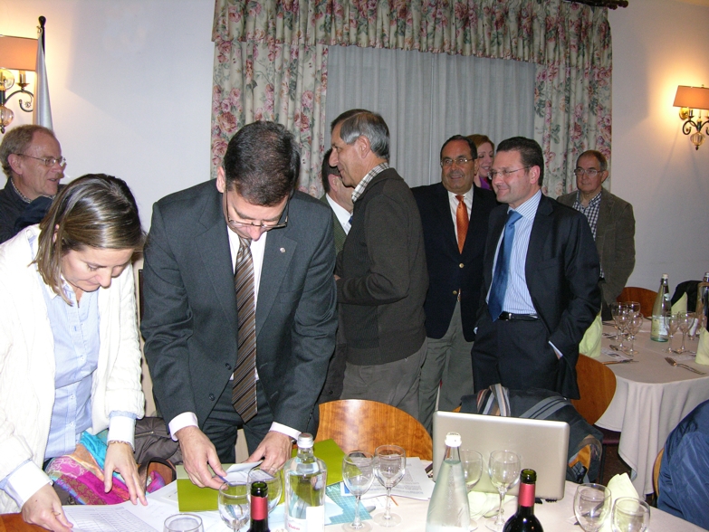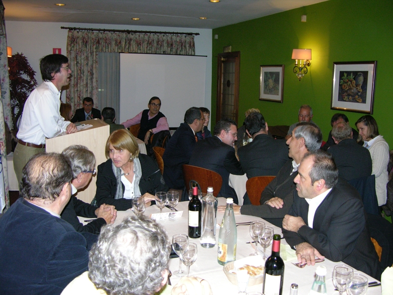 En David Otero, acompanyat d’altres membres de l’equip directiu de l’entitat “Mitja Marató de Terrassa” ha presentat als membres del Rotary Club de Terrassa el perquè es va crear aquesta organització i els objectius que persegueix.