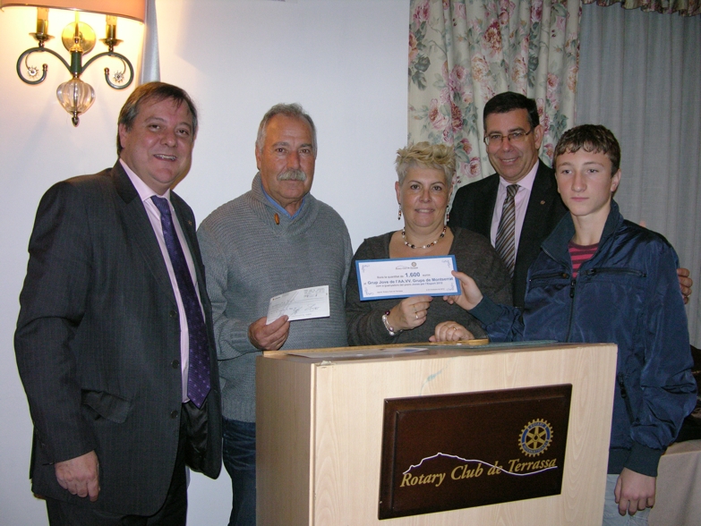 En el decurs d’un acte del Rotary Club de Terrassa s’ha lliurat un taló de 1.600 € corresponent al Primer Premi Joves per l’Esport que el Rotary va concedir al grup Jove de l’associació de veïns Grups de Montserrat.