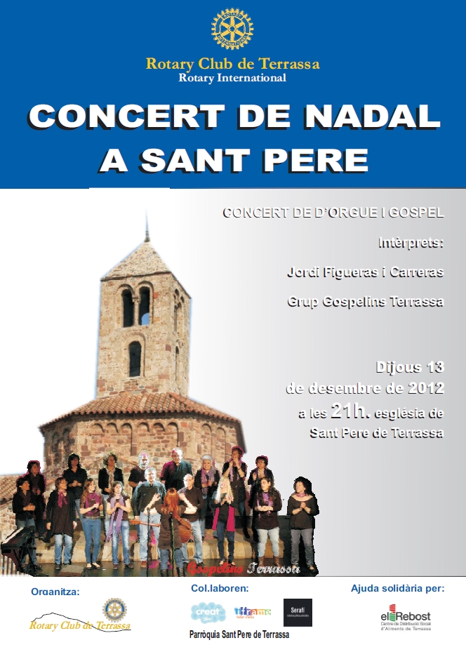 Us volem convidar al Tradicional Concert de Nadal que el Rotary Club de Terrassa cada any organitza amb la Parròquia de Sant Pere de Terrassa, el dijous dia 13 a les 21:00 h.