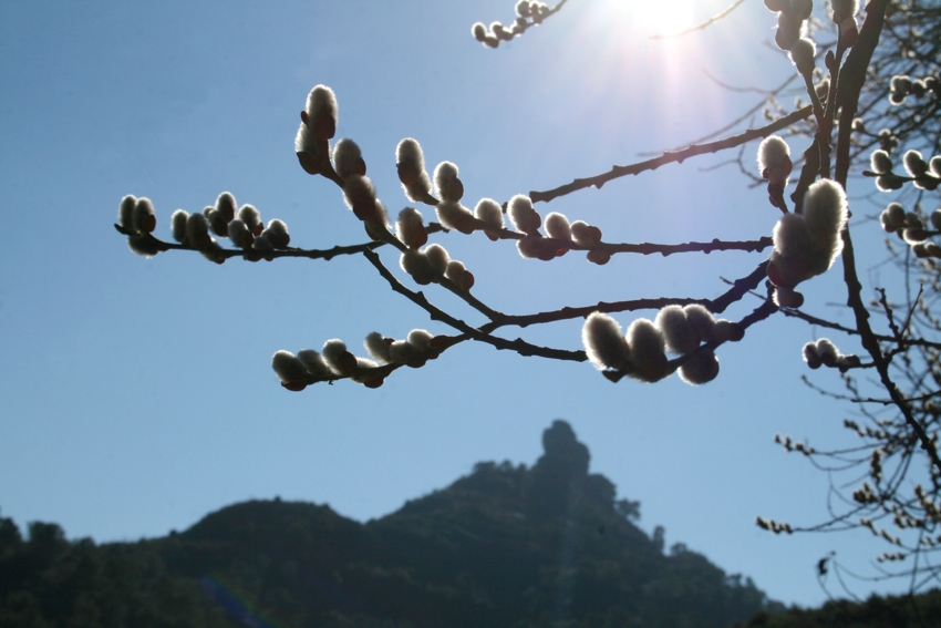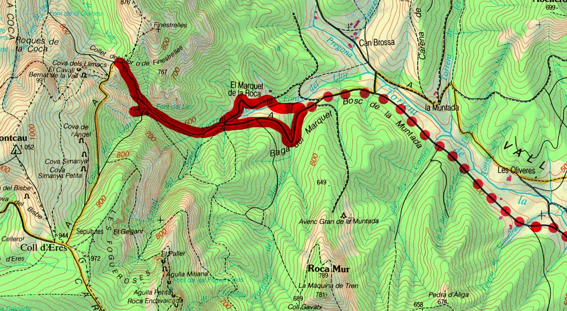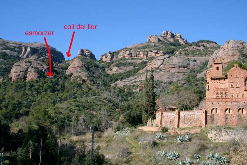 Al final un parell d’elements del grup hem continuat la pujada fins al collet del Llor des d’on hem pogut gaudir de la vista dels Emprius per un costat i del Montcau, que encara estava mig nevat, per l’altra. De nou hem baixat i em refet el grup per acostar-nos fins a la casa modernista del Marquet de la Roca. La nostra intenció era fer-ne la visita però actualment està tancada ja que tenen que refer la teulada (Aquesta casa era propietat de l’escriptor sabadellenc Joan Oliver Sallarés (Pere Quart) i molta de la seva obra literària l’escriví en la calma d’aquesta zona de la vall d’Horta.