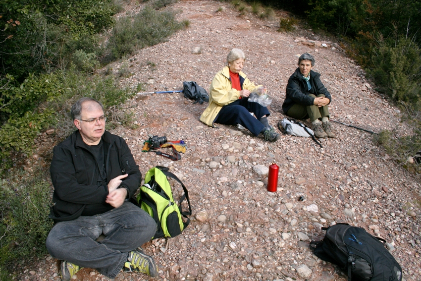 En aquest mirador ens hem aturat a esmorzar mentre al nostre davant s’anava aclarint la vista de Roca Mur, anomenada la màquina del tren.