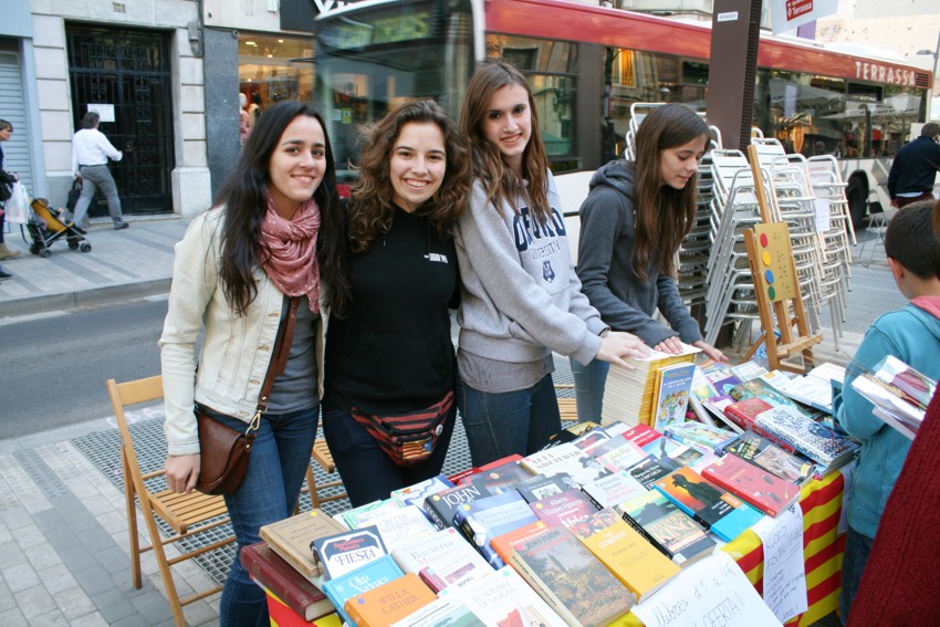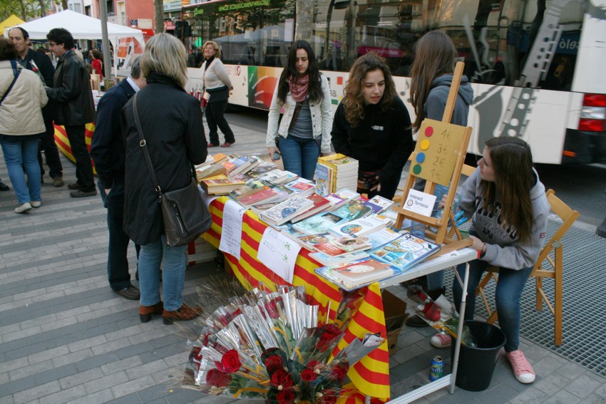 Aquesta diada de Sant Jordi les noies de l‘Interact han muntat la seva primera parada de venda de roses i llibres de segoma mà a la Rambla i aquí us mostrem algunes fotografies:
