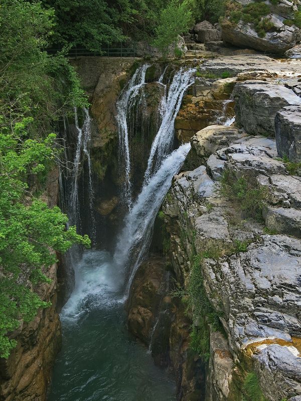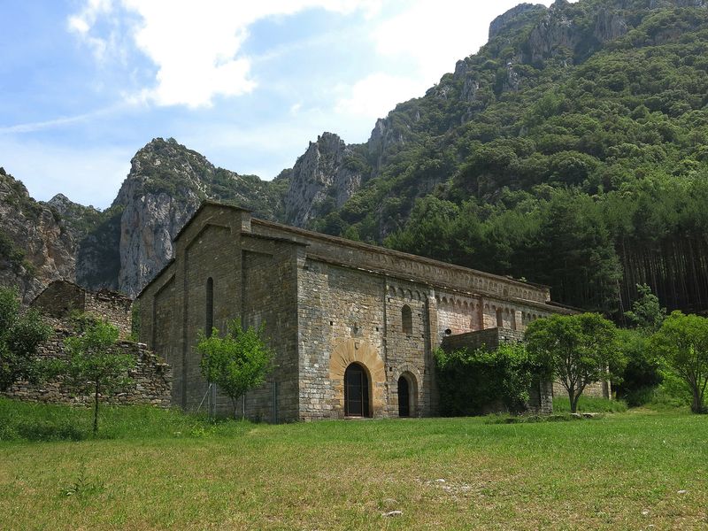 pujarem l’angosta vall del riu Bellos, admirant la bellesa, primer del Congost de las Cambras, i després del Cañón de Añisclo, on aparcàrem prop de l’ermita de San Úrbez, fent un recorregut turístic d’una hora, que permet contemplar la confluència del riu Aso amb el riu Bellos. La tornada cal fer-la per una altre carretera, ja que la primera és de sentit únic. Aquesta carretera és força carenera, pel que oferei