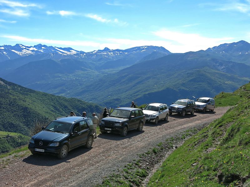 L’excursió 4×4 va anar molt bé, ja que el bon temps regnant ens va permetre fer tot el recorregut, tal com l’havíem previst. Començant per la Vall d’Isàbena, visitarem el Monestir d’Obarra (S.XI). Després de dinar ens vàrem endinsar pel massís del Turbón, fent uns pocs quilòmetres de pista, no massa bona, però gaudint de boscos i prats prou bonics. Posteriorment, arribàrem a la vall de l’Essera, que seguirem fins Benasque, on vàrem fer la primera nit. Encara abans de sopar ens arribàrem a l’Hospital de Benasque, però la boira i quatre gotes, no ens van deixar gaudir plenament d’aquest indret d’alta muntanya.