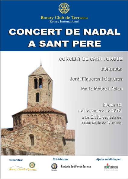 Us convidem al Tradicional Concert de Nadal que el Rotary Club de Terrassa cada any organitza amb la Parròquia de Sant Pere de Terrassa, el dijous dia 12 a les 21:00 h.