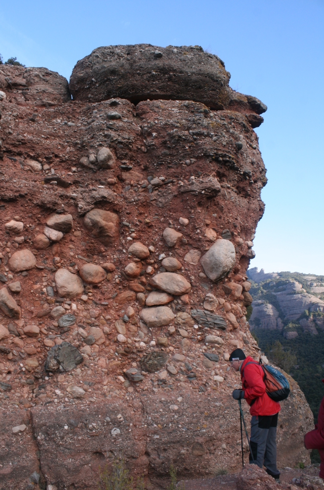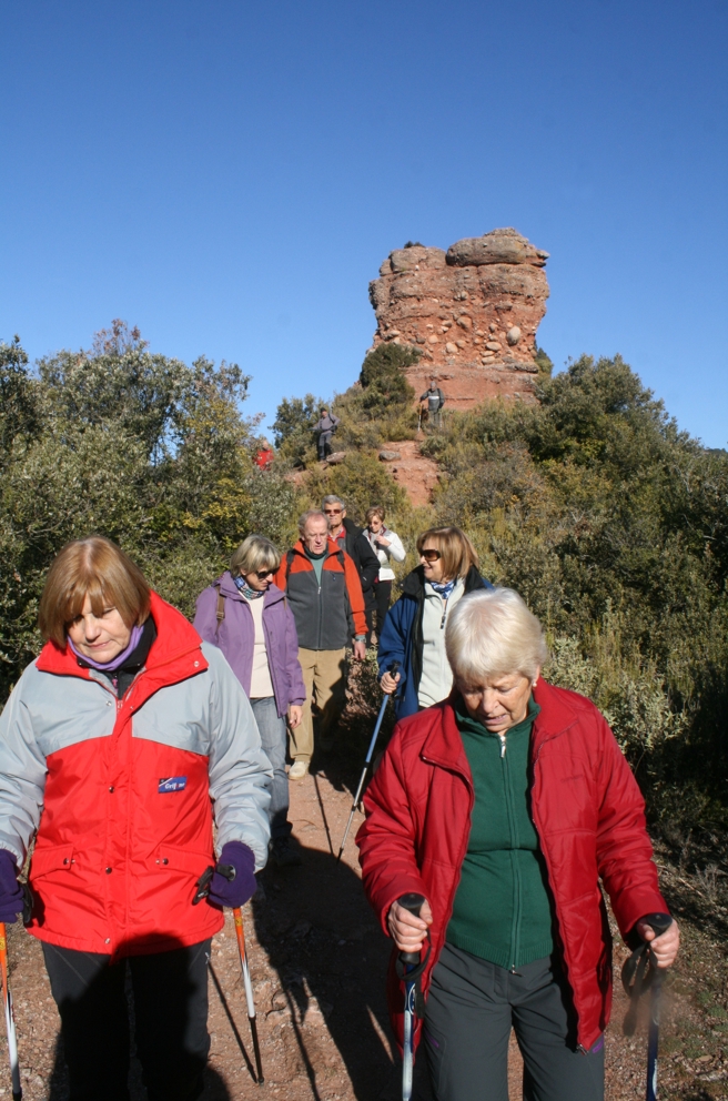 degut a que en aquesta zona el terra és ben vermellós. Aquí hem pujat fins a la seva base per esmorzar i començar a muntar el pessebre. Enguany hem comptat amb la inestimable ajuda del Jordi Baldó que com a expert constructor ha realitzat una construcció amb pedres per tal d’aixoplugar el pessebre del Club.