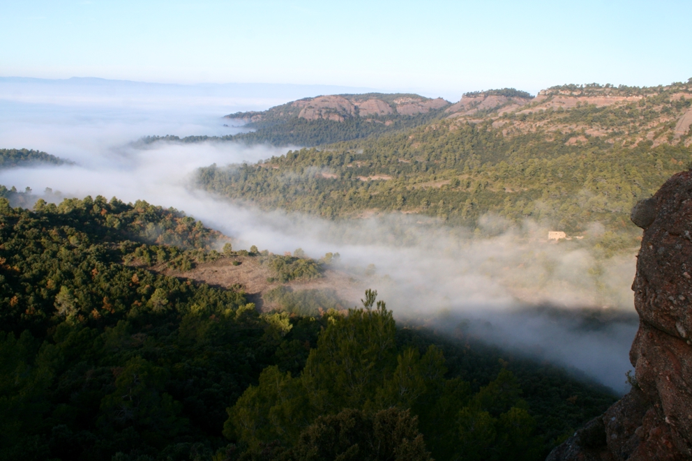 De la Pastora hem agafat el camí que trobem a la seva banda esquerra i que de forma planera ens porta fins les runes de la Casa Vella de l’Obac. Passem per sota de la torre que encara queda en peu i seguim per el camí que trobem més a la dreta i que porta el senyal de La Font de la Portella. Seguim el camí, gens perdedor fins que aquest arriba prop d’un turó que és ben visible a la nostra esquerra i que porta per nom el Turó Roig,