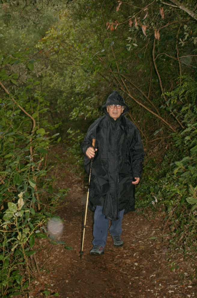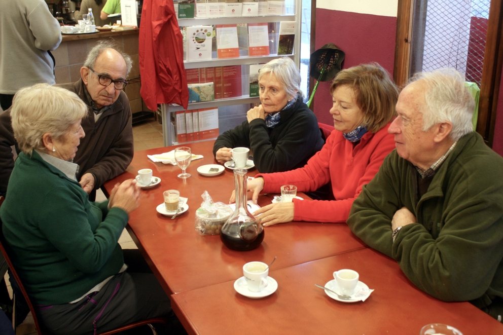 Just el temps de retirar les figures que hi quedaven (totes menys el bou) i el preuat llibre de signatures i la pluja ha començat a caure amb força. Tapats amb capellines de pluja hem retornat a l’Obac Vell i d’allí a la Casa de la Pastora, tota l’estona sota la pluja. Al restaurant ens hem aixoplugat i és on hem esmorzat tots plegats, tot fent-la petar. Hem llegit els comentaris que la gent ens ha deixat en la llibreta del pessebre i hem escoltat unes agradables anècdotes del bon amic Oriol Badia.