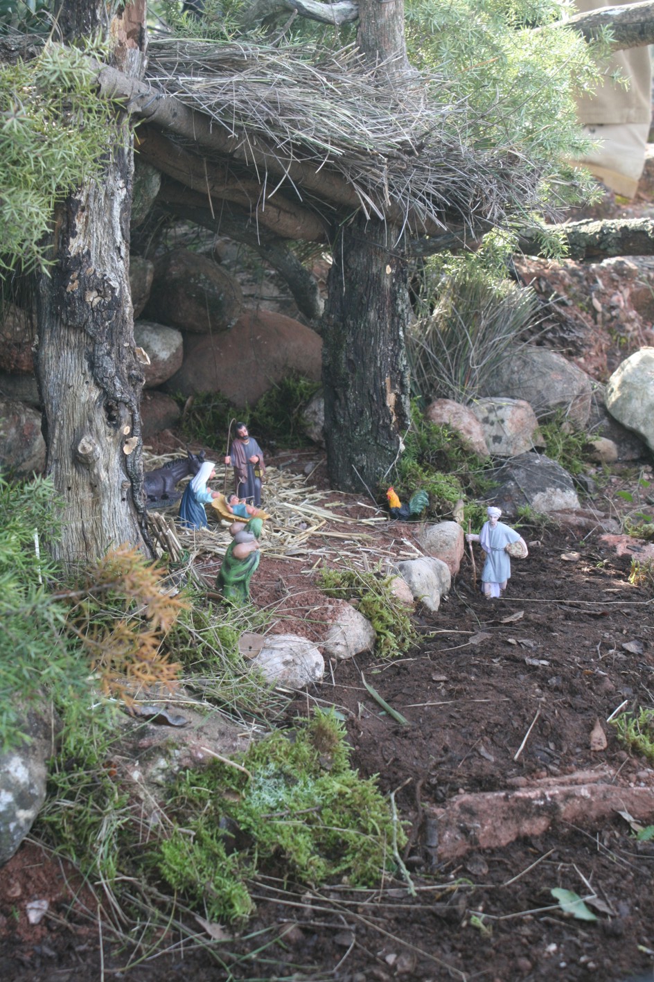 L’obra ha anat a càrrec del Jordi Baldó, que com expert constructor ha dissenyat un pessebre molt bonic amb 3 terrasses i que situat a la banda dreta del camí permet observar-lo amb molta facilitat tant per la gent gran com pels menuts. Els demés l’hem ajudat aportant-li els materials que ens demanava: pedres, herbes o troncs.