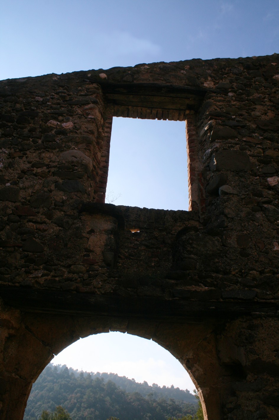 Desprès tornem al camí i poc més endavant arribem a les runes de la Calsina una bonica mostra de casa de pagès que ofereix unes vistes magnifiques de la canal que acabem de baixar. D’aquí hem seguit el camí ample que surt del davant de la casa, tot visitant la font del Clot que trobem a la dreta del camí. Aquesta pista, apta per cotxes, giravolta força estona i nosaltres l’hem de seguir no fent cas a cap trencall que trobem i quan hi ha una bifurcació sempre ens decidim pel camí que vagi més a la nostra esquerra. Seguim fins a trobar una línia elèctrica força visible i aquí agafem un caminet que puja i la segueix per sota. Ens du de nou a la pista que