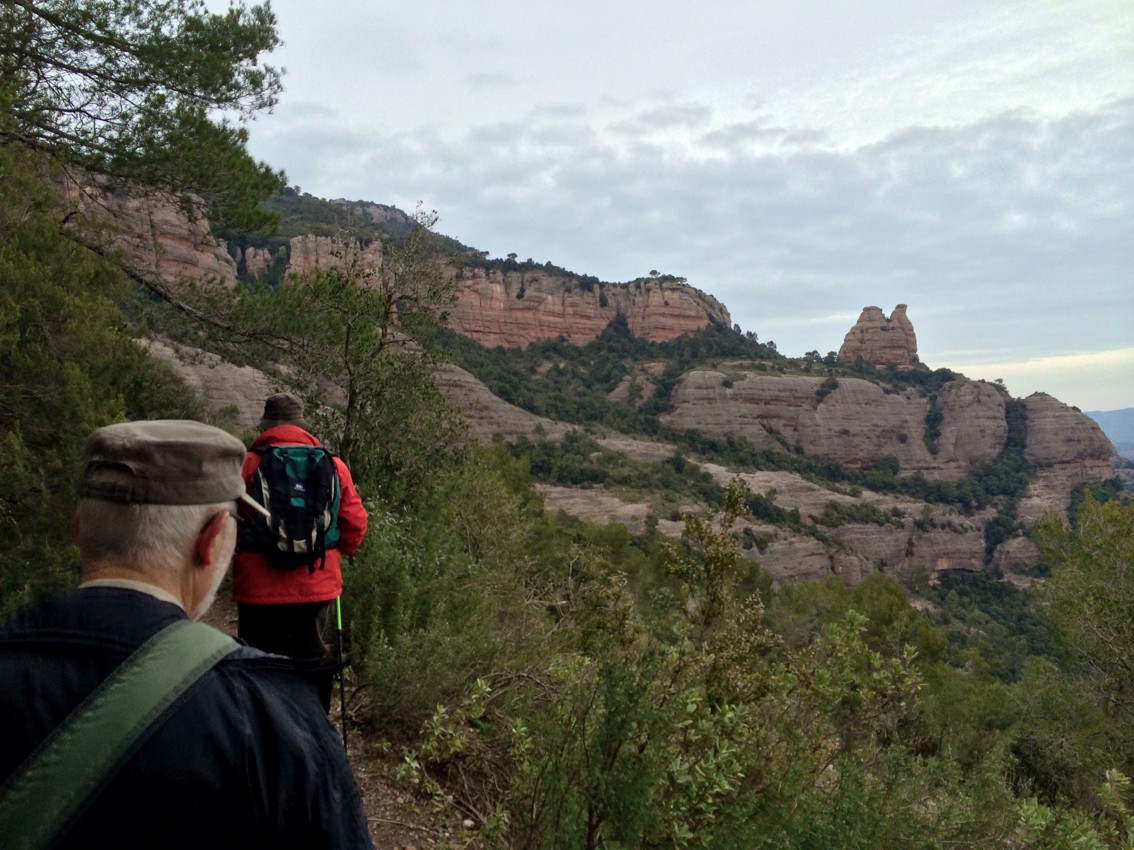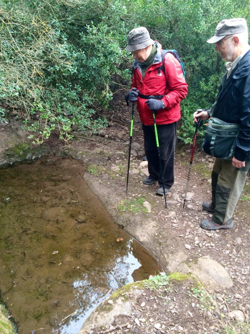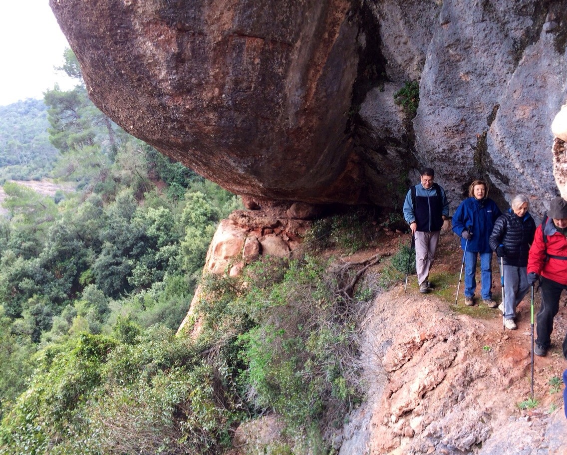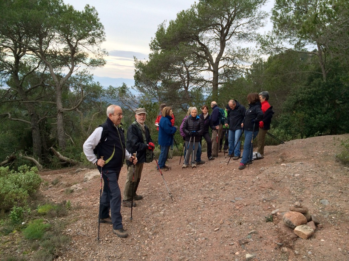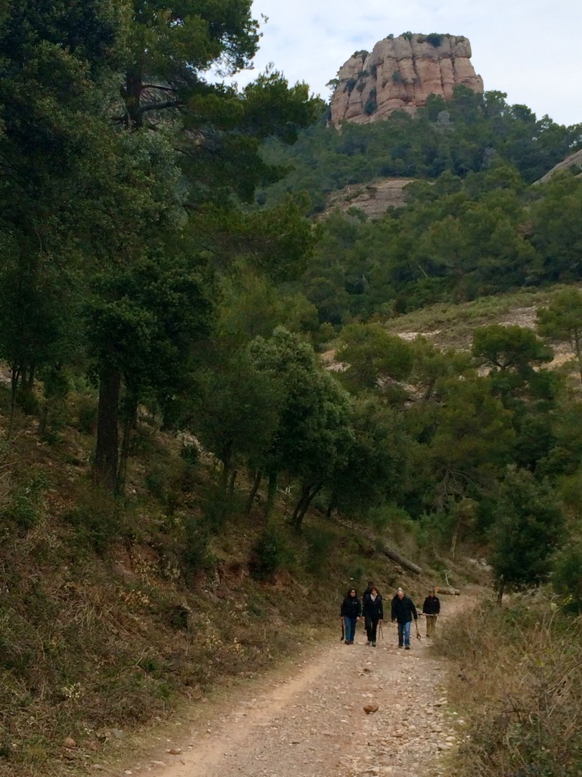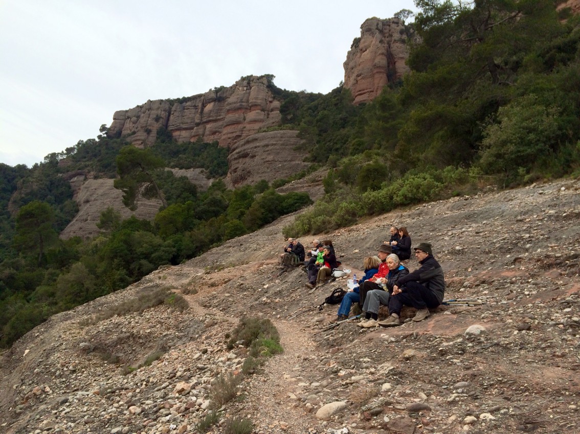 El camí és planer de bon fer i en el proper rocam ens hem parat per esmorzar. Un cops tips hem seguit fins que el camí fa una forta giragonsa a mà dreta i baixa sobtadament. Desprès d’un rocam ens endinsem en un bosc d’alzines i veiem a mà dreta uns padrons que ens marquen les traces d’un camí poc marcat.