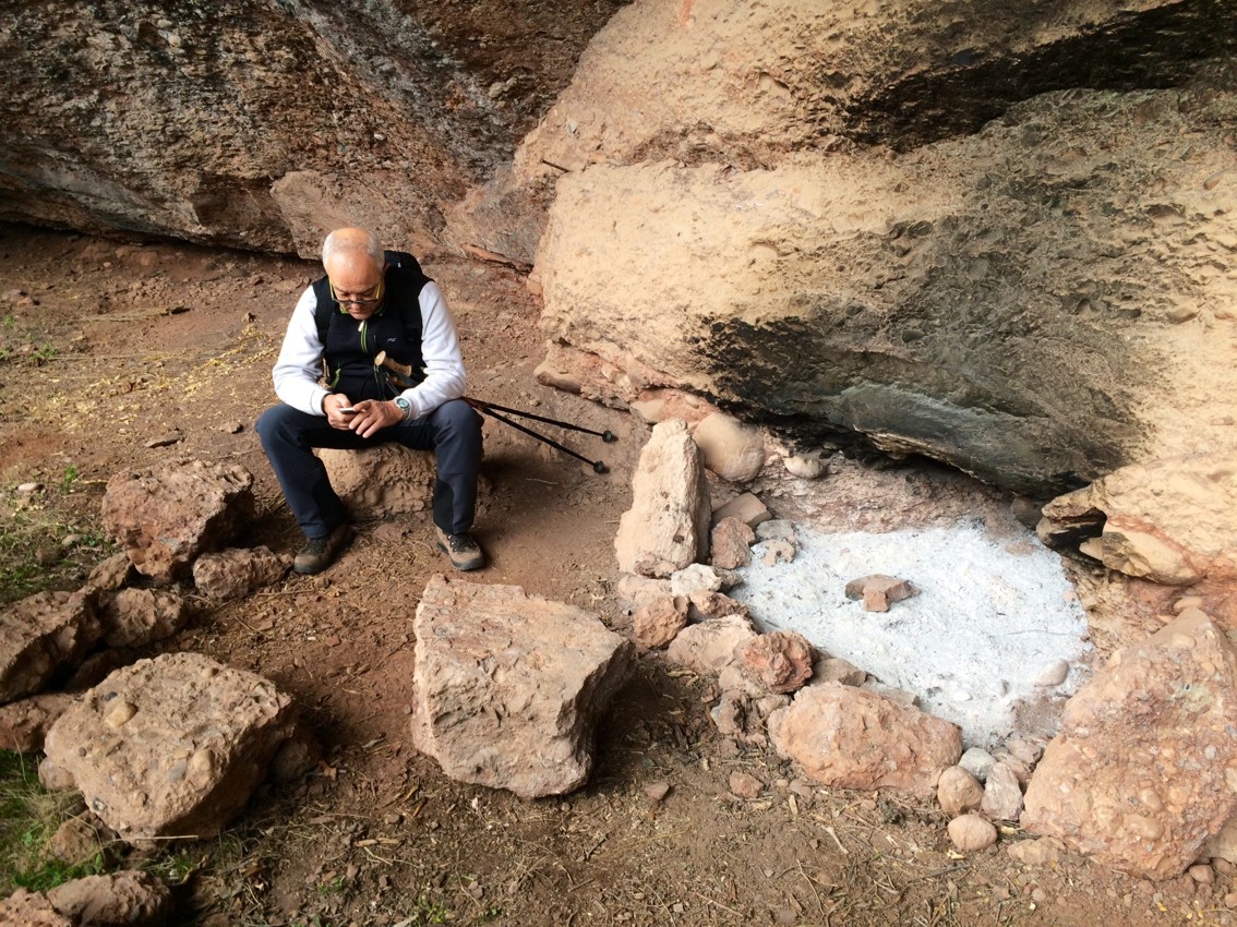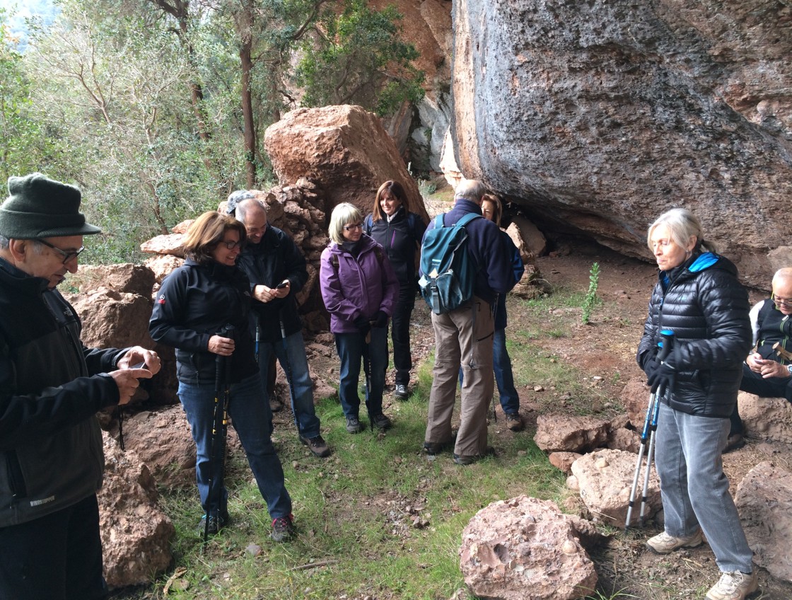 Cal recordar aquest punt ja que si bé d’entrada no l’agafarem a la tornada si que ho farem. Nosaltres hem seguit pel camí principal que ens ha portat fins al Coll Llarg on es pot observar unes vistes extraordinàries tant de la Castellassa de Can Torres com de la zona de la Castellassa del Dalmau. Tornem enrere pel mateix camí fins a trobar els padrons que ara ens queden a l’esquerra. Cal seguir però amb compte ja que arriba un moment que cal desviar-nos a mà dreta i agafar una forta baixada que ens porta en una zona plena d’esbarzers i aritjols. Aquí cal inventar-se una mica el camí i mirar de tirar sempre a la nostra dreta per arribar a l’entrada de la desconeguda Balma del Sot de la Carda.
