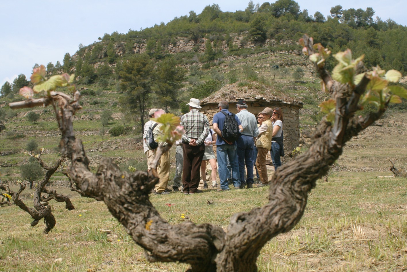 Llavors em tornat a la carretera de Rocafort per seguir fins a trobar un nou trencall a mà dreta en direcció a Can Riera i que ens ha portat a visitar les vinyes i Tina de l’Arboset, on hem pogut veure una plantació de ceps vells que ha permès recuperar des de fa dos anys la manera tradicional de fer vi d’aquesta zona del Bages.