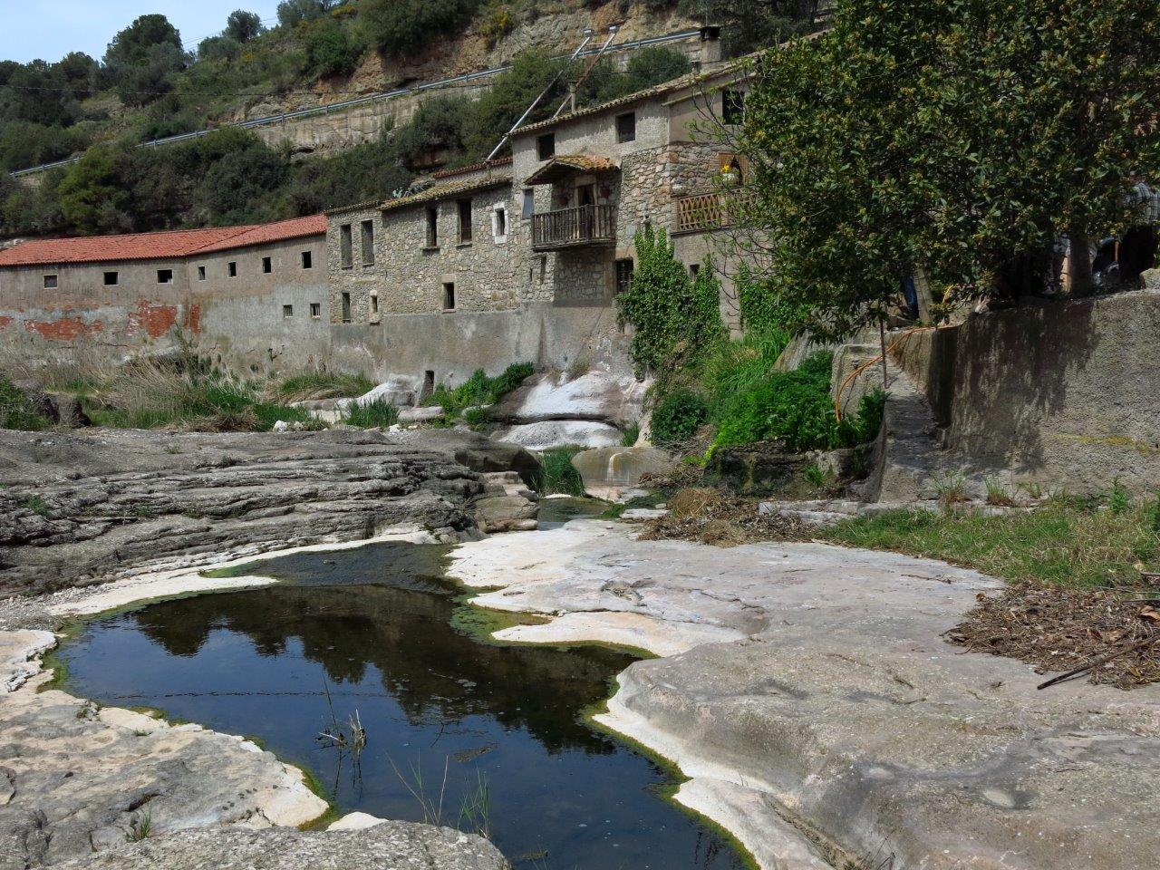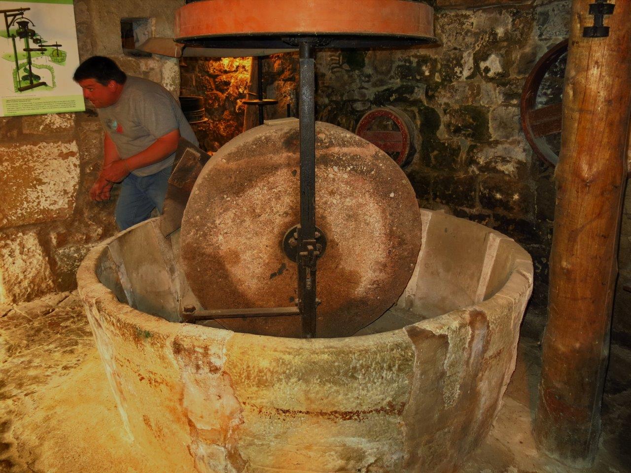 per conduir l’aigua a una bassa enorme que amb un pou d’uns 50 metres que es va estrenyent va que la pressió de l’aigua aplicada a una turbina permeti moure les pedres del molí de la farina, la premsa pel vi i l’oli i un sistema de corretges que permeten obtenir electricitat. La historia de les pedres del molí que ens ha explicat ha estat per sucar-hi pa i us recomanem que si algú el va a visitar li demani l’explicació del que vol dir la dita popular de que “els catalans de les pedres en fem pans”.