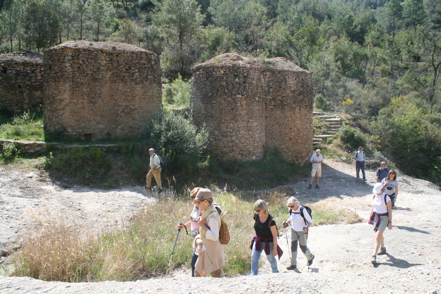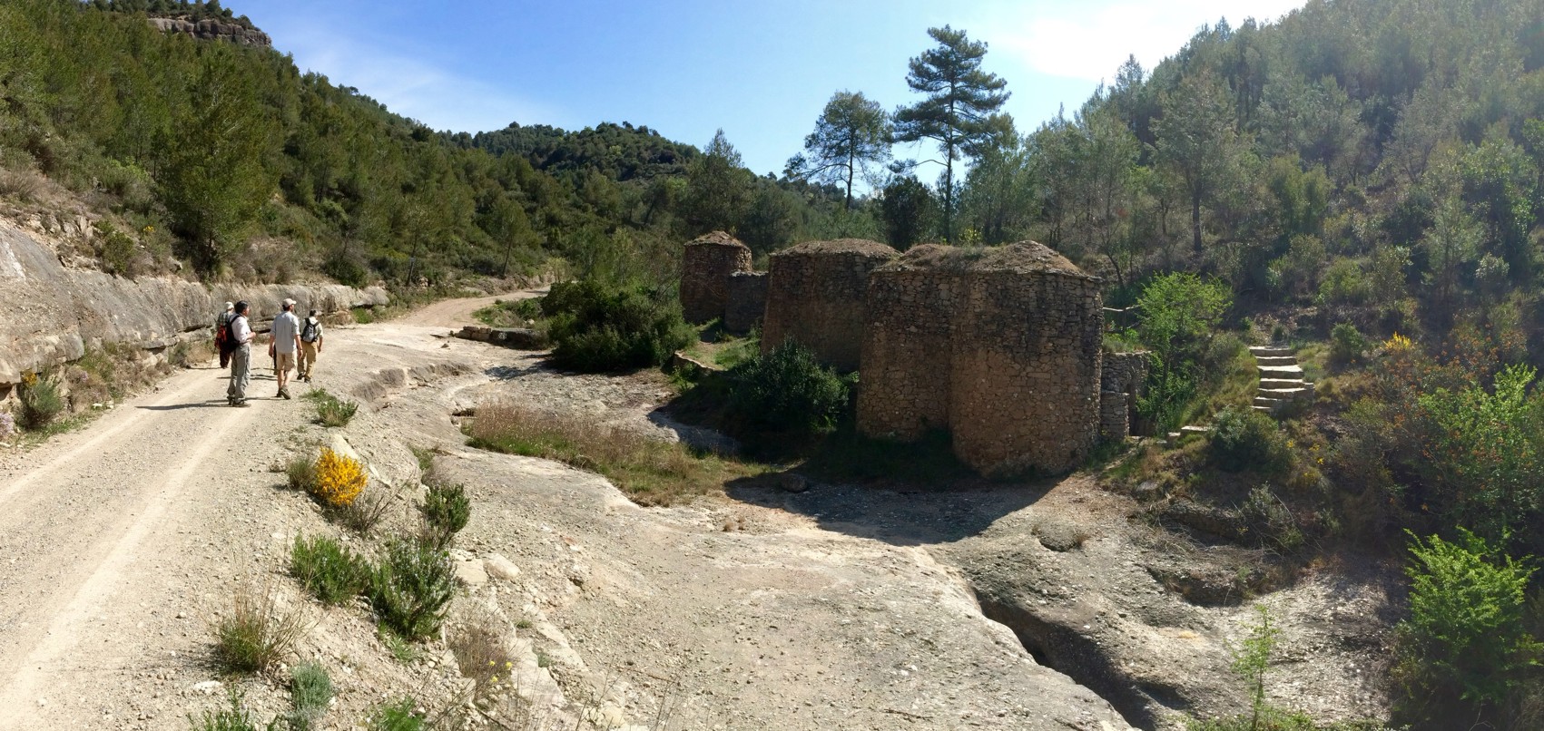 Un cop travessat el torrent el camí continua fins a trobar la pista ample que agafem a mà dreta i que ens porta fins a les Tines del Ricardo a tocar mateix del llit del torrent. La tornada la fem seguint la pista en direcció contraria i admirant pel camí un paisatge molt més obert, on es poden veure diverses barraques de vinya, a més d’obtenir algunes de les millors