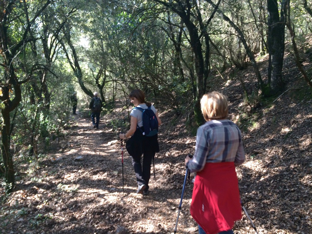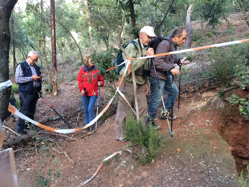 Un grup del Rotary Terrassa hem començat la sortida a l’aparcament que hi ha davant de la Barata, tot baixant per la pista que baixa fins la riera i la travessa i quan la pista puja hem agafat el primer trencall a l’esquerra tot travessant un cadenat. Hem seguit per un camí ample fins que hem trobat un pal elèctric amb el número 24 i llavors hem entrat al bosc de la dreta i a uns 25