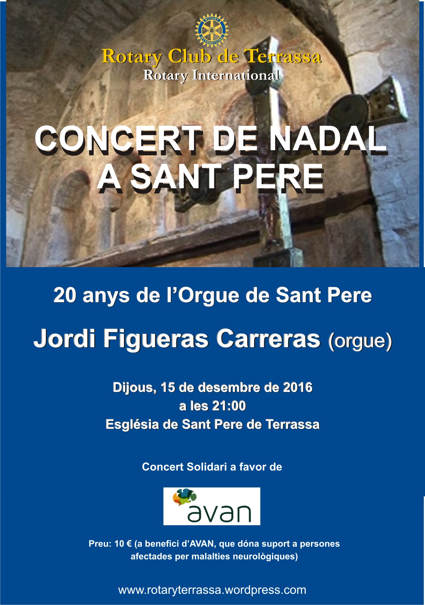 Un any més us convidem al Tradicional Concert Solidari de Nadal que el Rotary Club de Terrassa cada any organitza amb la Parròquia de Sant Pere de Terrassa, el dijous dia 15 de desembre a les 21:00 h.
