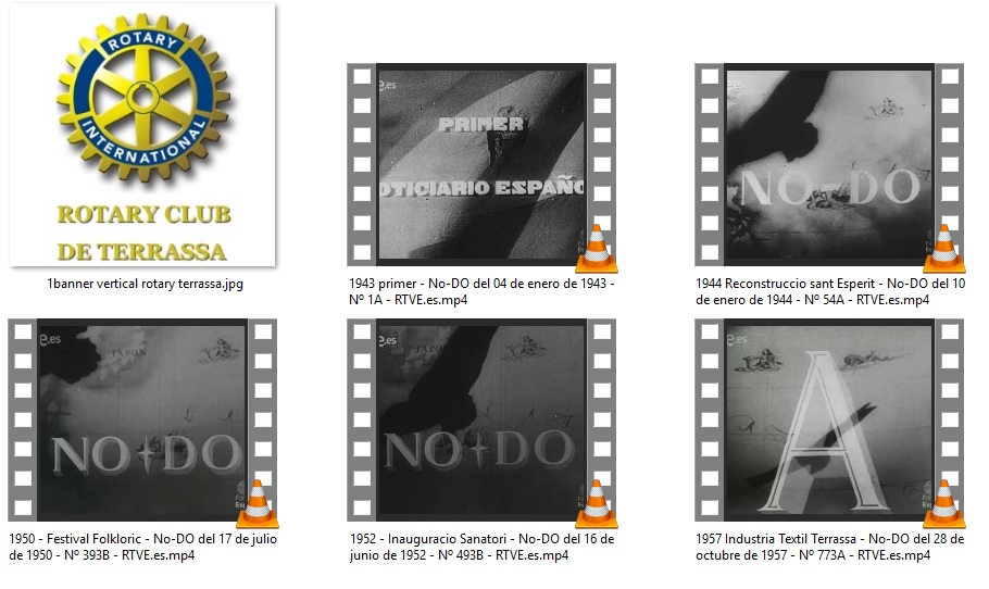 El Rotary Club de Terrassa el proper dimarts dia 31 de gener, en el decurs d’un sopar a l’Hostal del Fum, farà un passi de pel·lícules sobre Terrassa extretes del NO-DO i que van des de l’emissió el 10 de gener de 1944 de un reportatge de la Reconstrucció del Sant Esperit fins a l’emissió del 28 d’abril de 1980 amb un reportatge del 19 Campionat de Motocròs celebrat al Circuit del Vallés i que ja va ser emès en color.