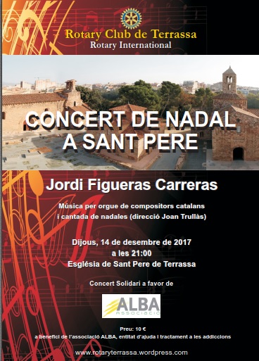 Un any més us convidem al Tradicional Concert Solidari de Nadal que el Rotary Club de Terrassa cada any organitza amb la Parròquia de Sant Pere de Terrassa, el dijous dia 14 de desembre a les 21:00 h.