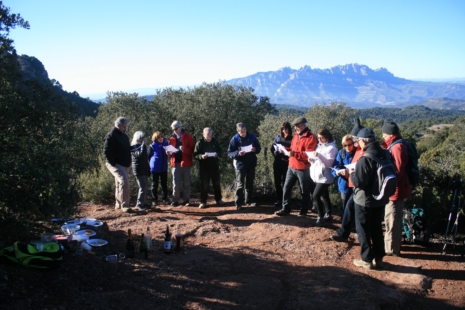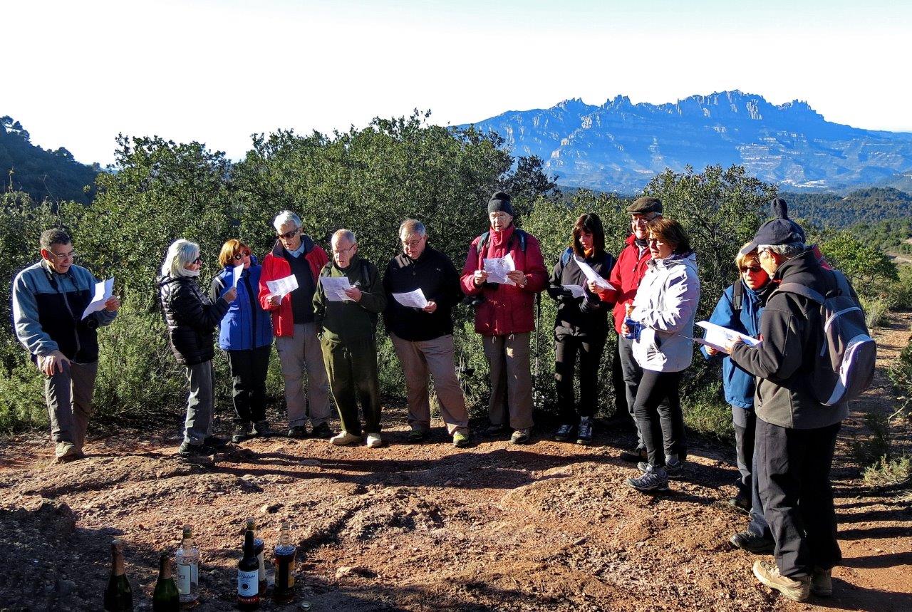Aprofitat l’avinentesa hem celebrat aquesta trobada tot compartint una mica de torrons, moscatell i cava, mentre hem cantat unes nadales de cara a la serralada de Montserrat.