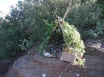 Destaquem que en la seva construcció només emprem materials dels rodals i alguna branca, sense fer malbé cap planta (les branques utilitzades són de les que creixen als vorals del camí i encapçar-les ajude a fer més practicable el cami a la font de la Portella). Al costat hi hem deixat una llibreta perquè tots el que el visiteu hi pugueu deixar el vostre missatge.