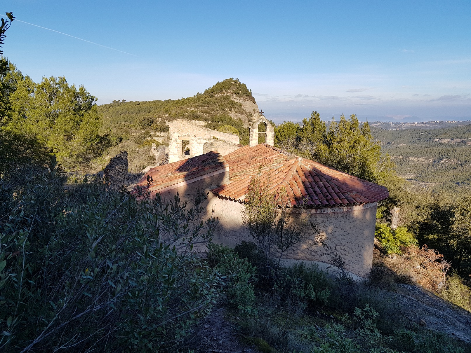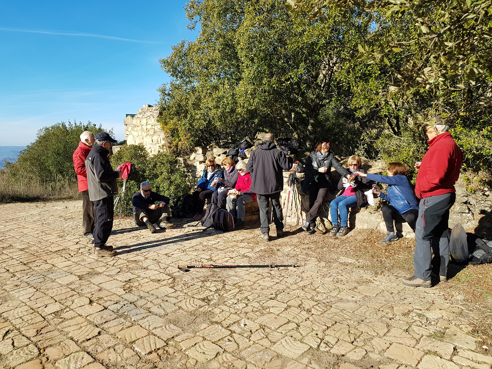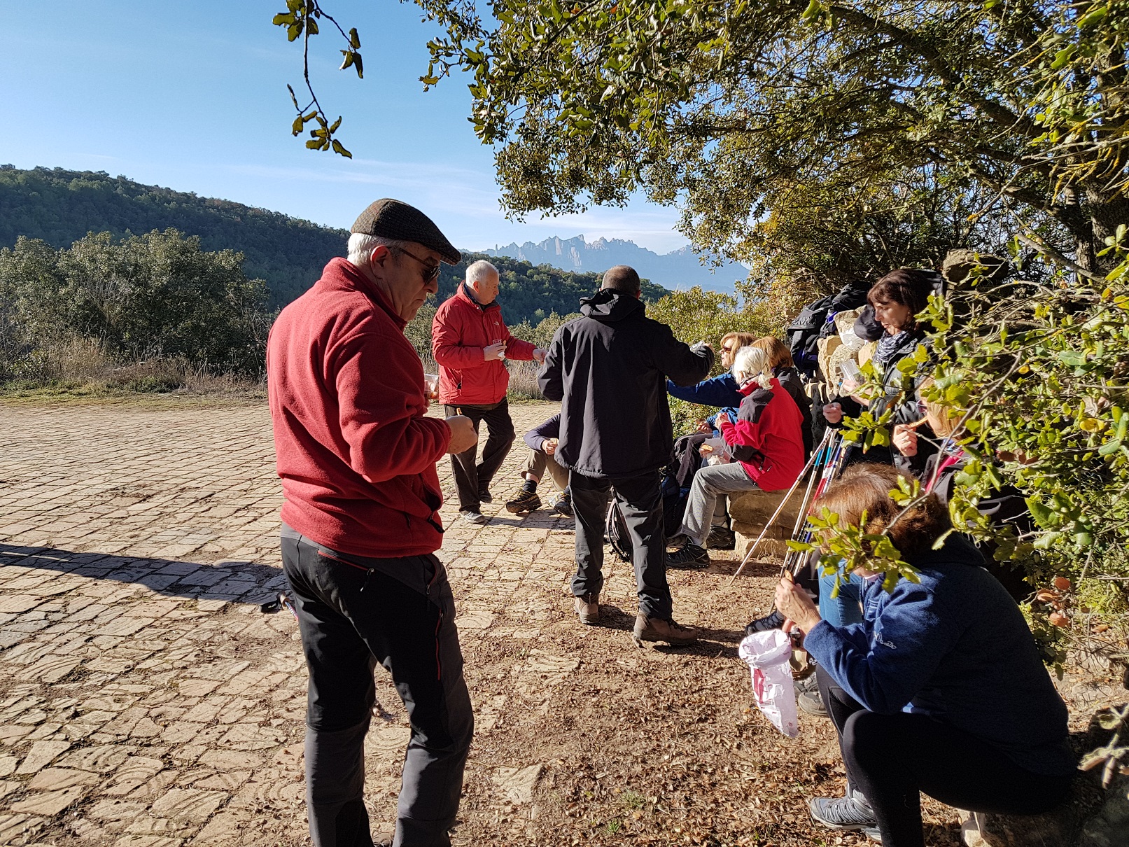 Tornem a l’ermita per visitar les runes de l’Hostal de Vallhonesta que ara sembla en procés de neteja ja que hi ha unes cintes que protegeixen el seu perímetre. Travessem les restes per visitar la zona dels estables i admirar unes espectaculars estances que permetien allotjar fins a 70 muls. Sortim per l’altra banda fins arribar a l’era enrajolada de l’antic Mas de Vallhonesta on esmorzem tot gaudint de bones vistes de Montserrat i el Montcau a banda i banda.