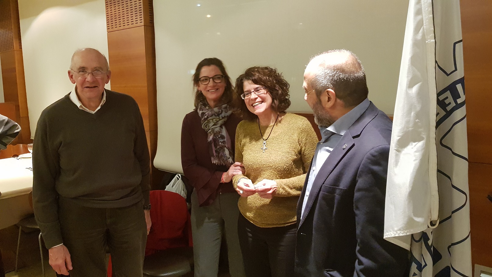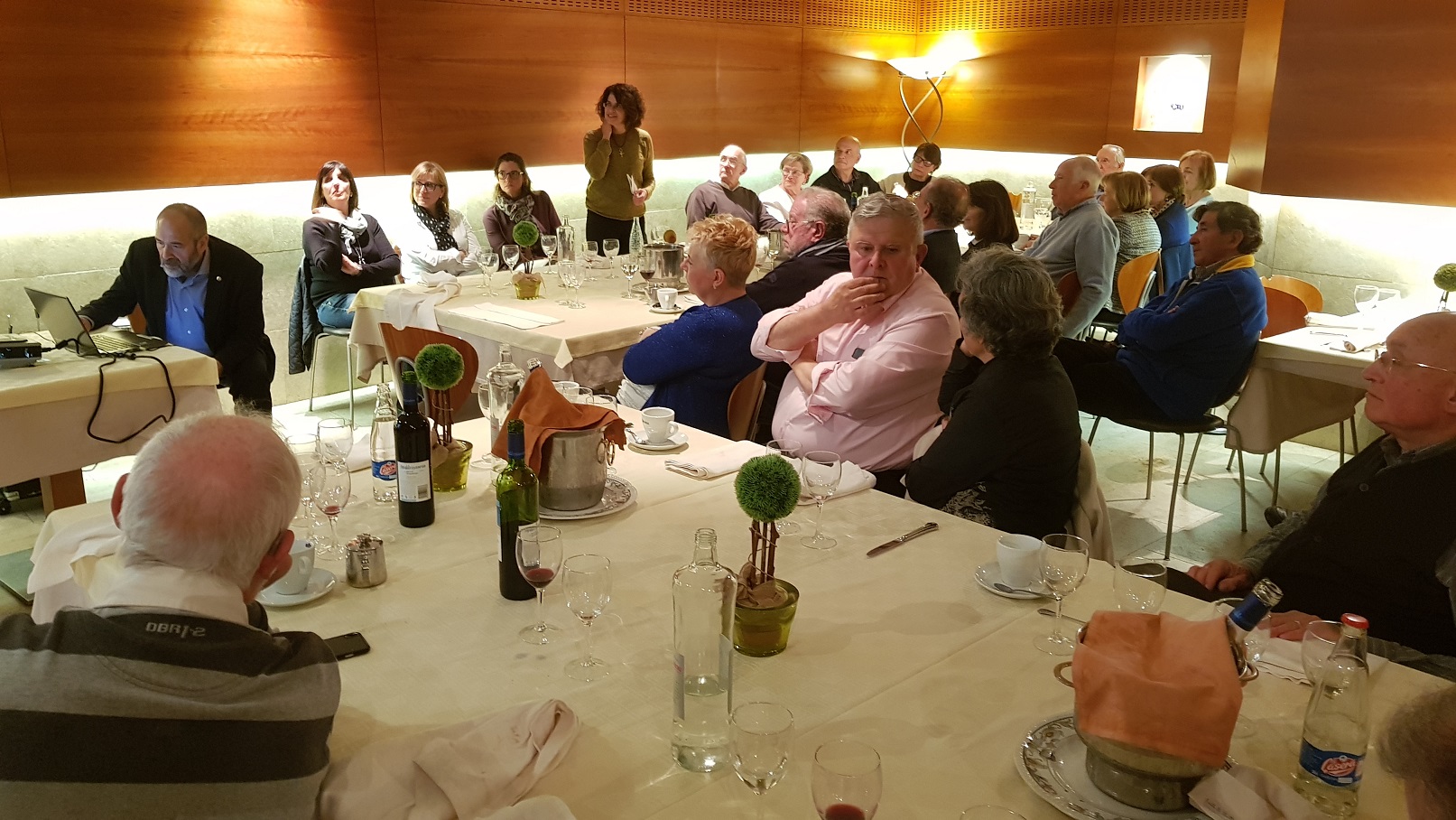 Finalitzats els parlament el President de l’entitat Josep Munné amb la presencia del Tresorer, Sebastià Codina han lliurat un taló de 2500 € a les representants de la Fundació Vicente Ferrer per tal d’ajudar en la construcció d’una planta potabilitzadora a la Índia, tot recordant als assistents que aquesta quantitat correspon a la recapta solidaria que es va fer en el sopar de Nadal més la quantitat recaptada en el concert del 25è aniversari del Club.