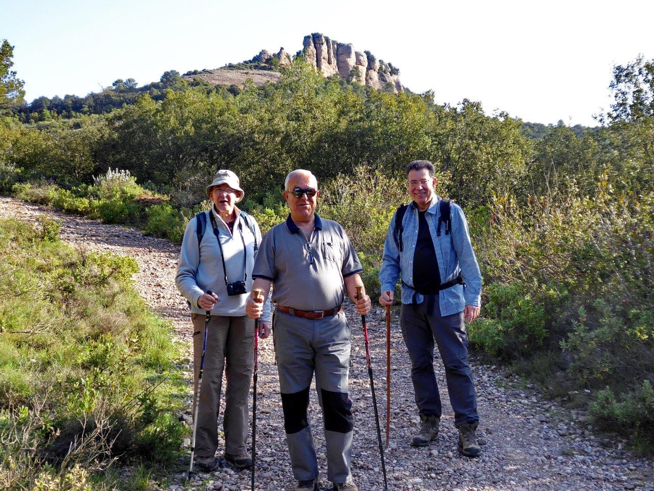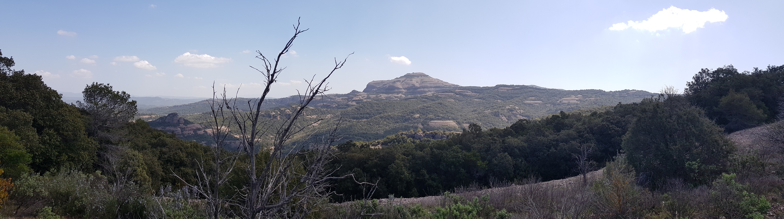 Passant per una zona ombrívola hem arribat a la zona del pla de Serrallonga amb unes boniques vistes de Montserrat i el Montcau a banda i banda. I al davant els tres cims que consta l’excursió: el Turó dels Ducs, el Puigbó i el Puig Andreu i més a la seva esquerra el Turó del Malpàs i el sot de l’Infern que els separa.