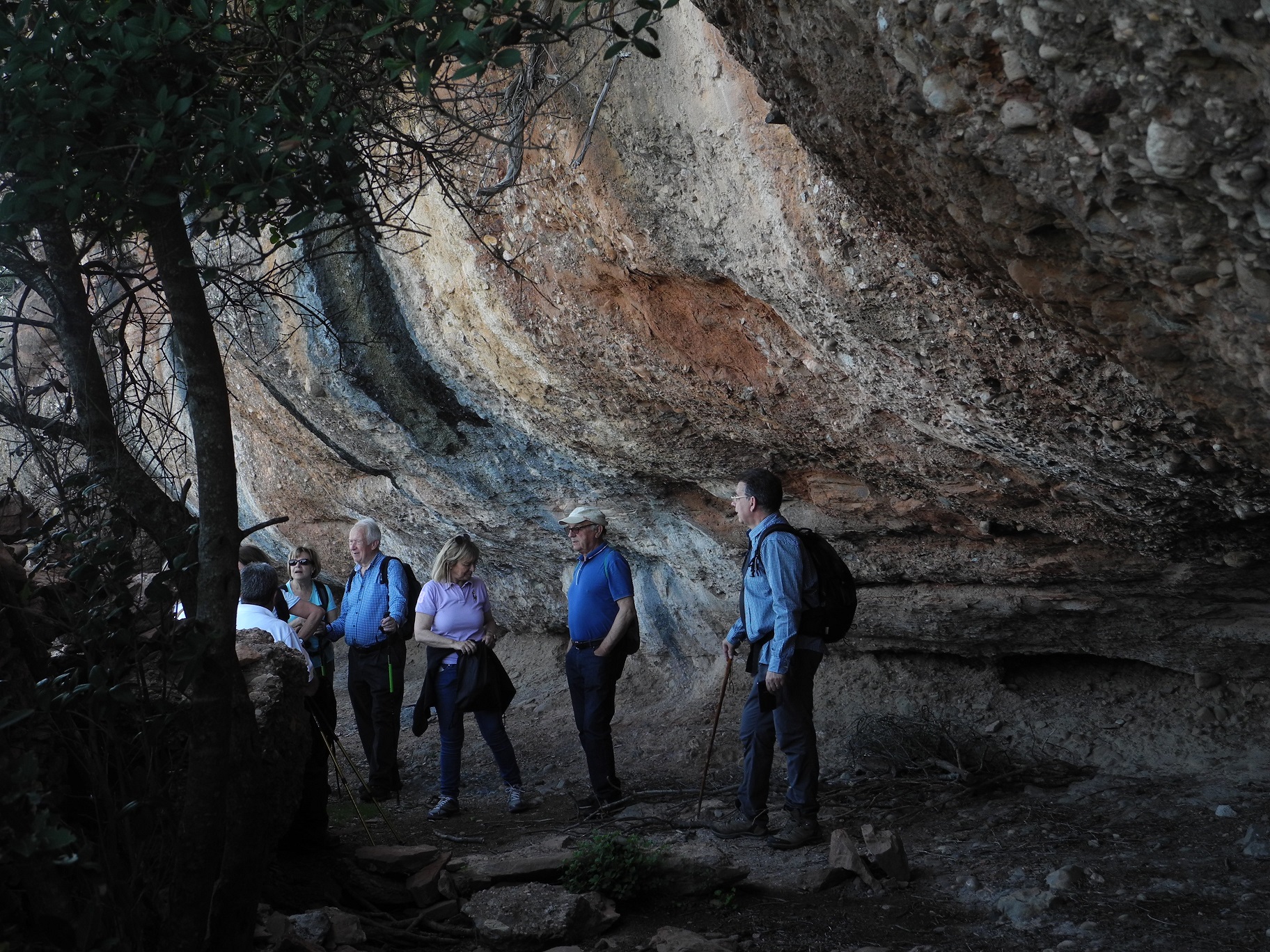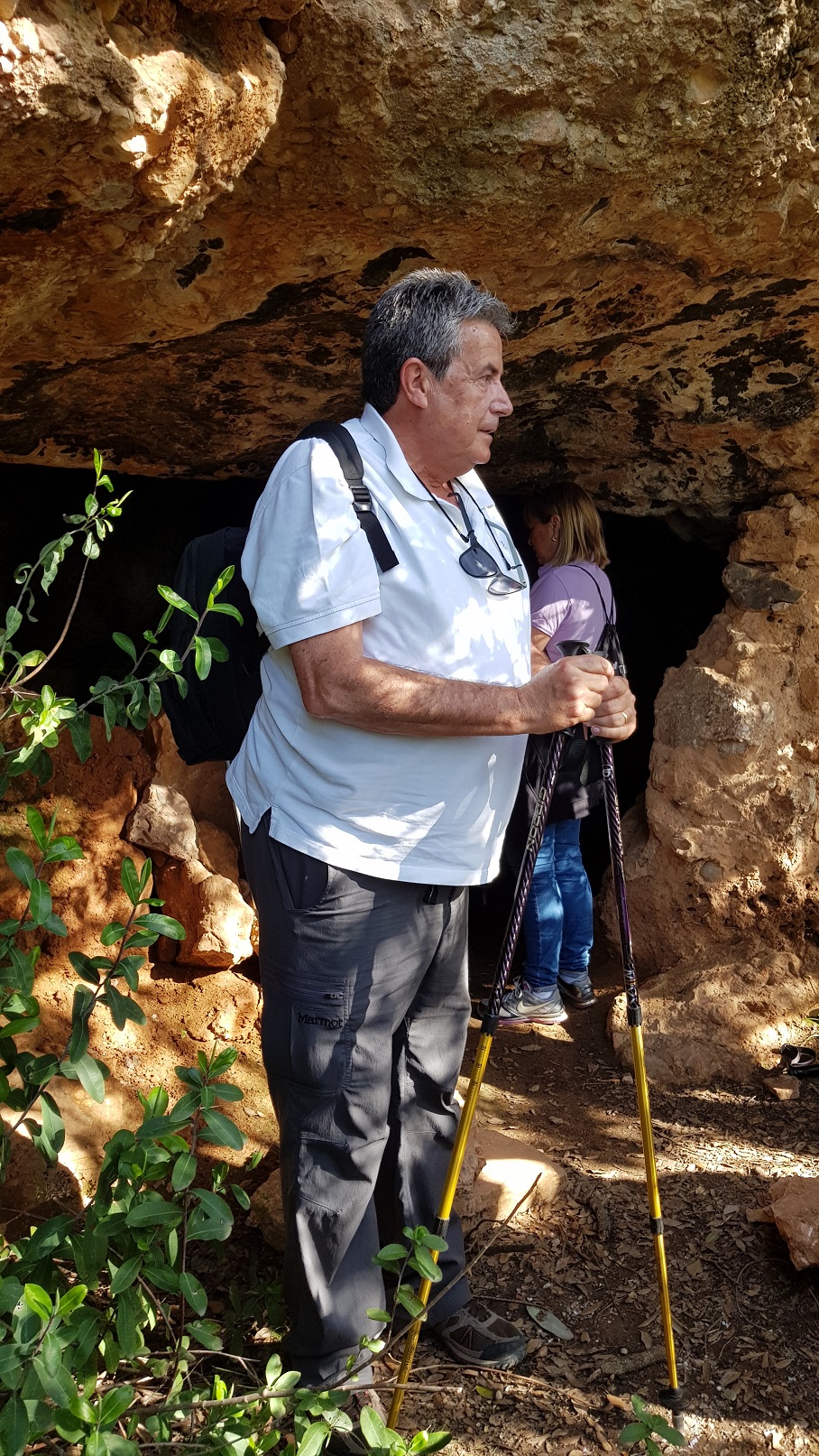 Una cop sota del Puig Andreu hem cercat un camí que puja cap a la seva base i que girant a mà dreta porta fins a la bonica balma obrada en la que encara es poden observar restes d’espitlleres.