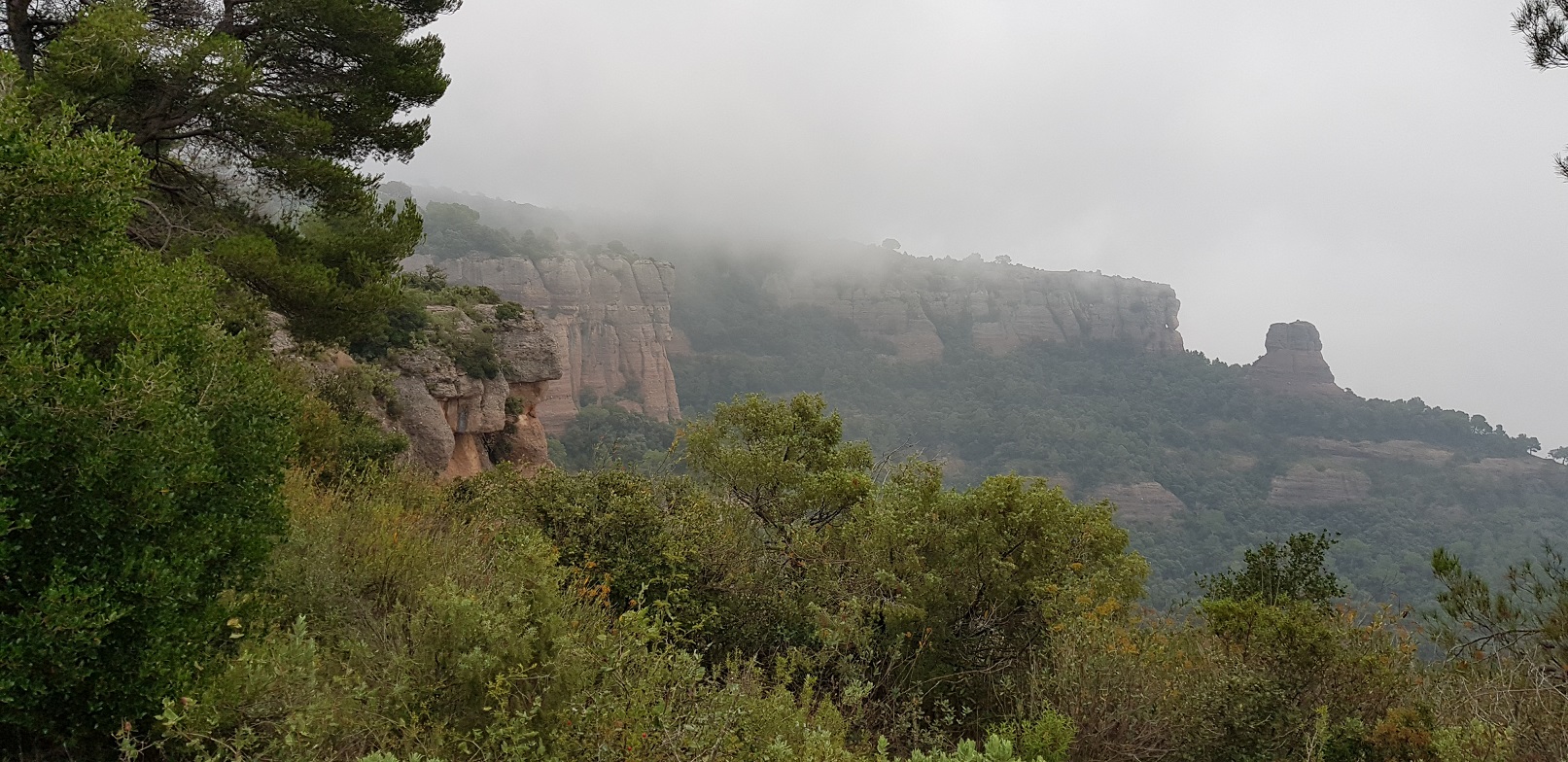 El camí baixa per un rocam fins arribar a la canal que és un xic tenebrosa. Després arribem a un bosquet que ja ens porta directament als camins de la urbanització on havíem deixat els cotxes.