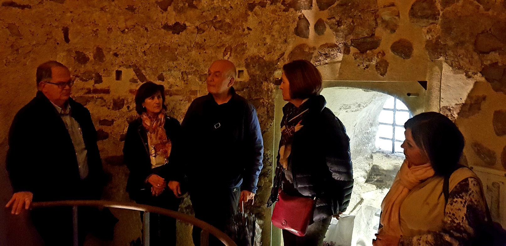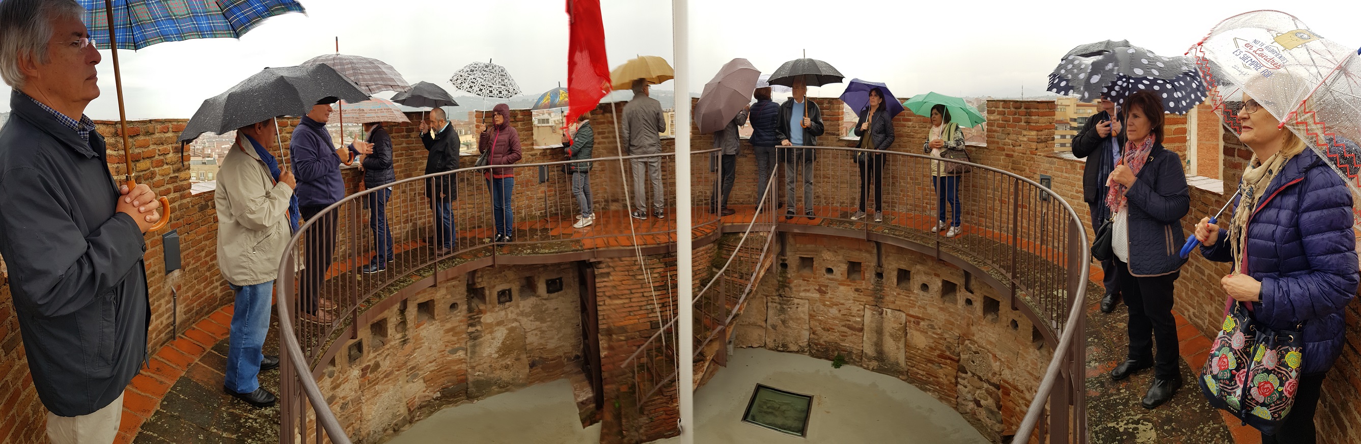 La visita que vàrem fer el Rotary Club de Terrassa en un dia plujós va començar amb la visualització d’un documental històric sobre els orígens de la Terrassa medieval al Centre d’interpretació històrica de Terrassa i a continuació em iniciat la visita de la Torre del Palau amb unes interessants explicacions de la mà del Domènec Ferran, soci del club i Director del Museu de Terrassa.