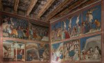 Abans de la visita hem gaudit de l’exposició temporal «Murals divins» que hi ha a la sala capitular del monestir. La mostra proporciona claus per mirar les pintures que decoren l’espai amb ulls nous a través de les dades recollides en el procés de restauració i conservació. Així, «Murals divins»