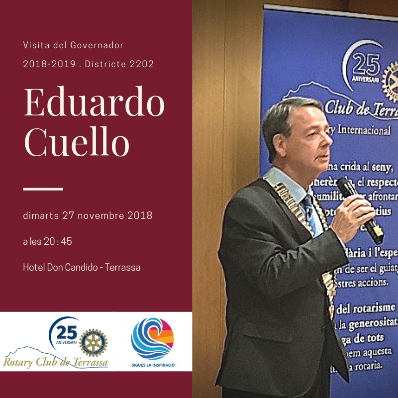 Ens ha visitat el governador del districte 2202 Sr, Eduardo Cuello acompanyat de la seva esposa i la secretaria del governador Montse del Moral en un plenari on hem començat amb la lectura d’un poema de “Ana Francisca Abarca de Bolea” en honor a que el governador pertany al Rotary Club d’Osca.La temàtica de la seva poesia te un caràcter eminentment sacre i popular i alguns d’ells utilitza la llengua aragonesa del segle XVII en el que es poden observar paraules d’origen clarament català, com en el següent exemple:
